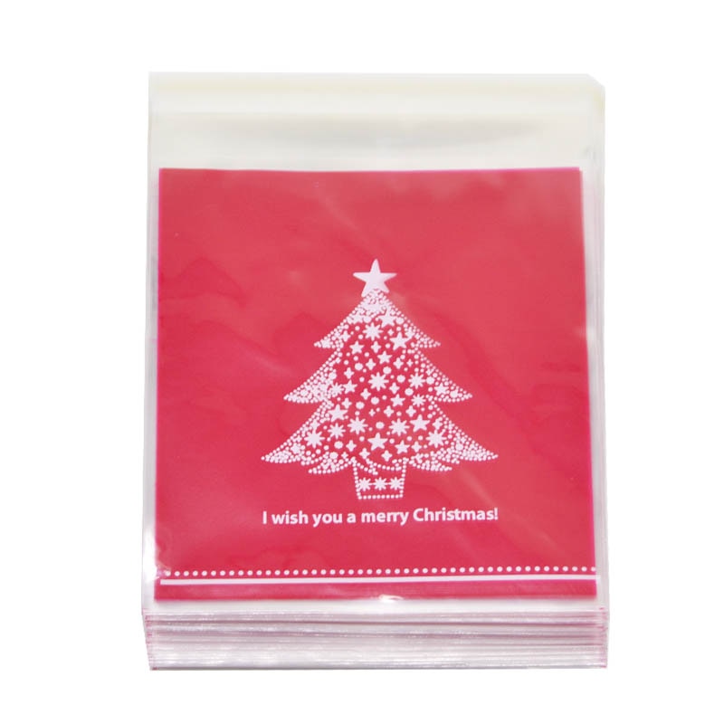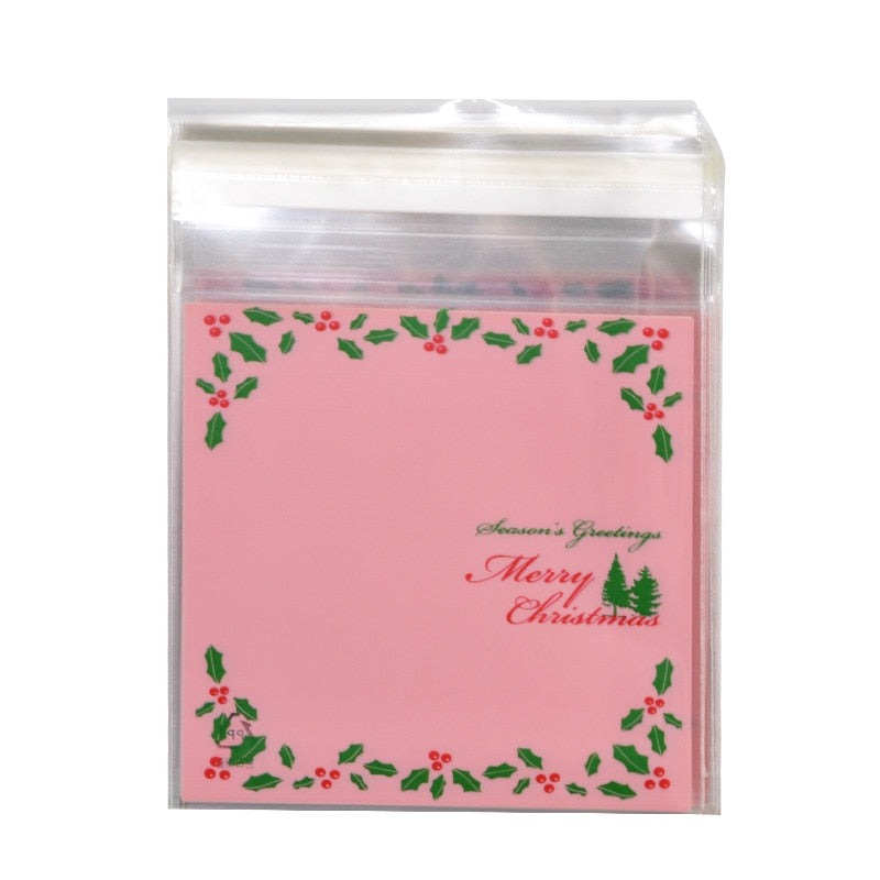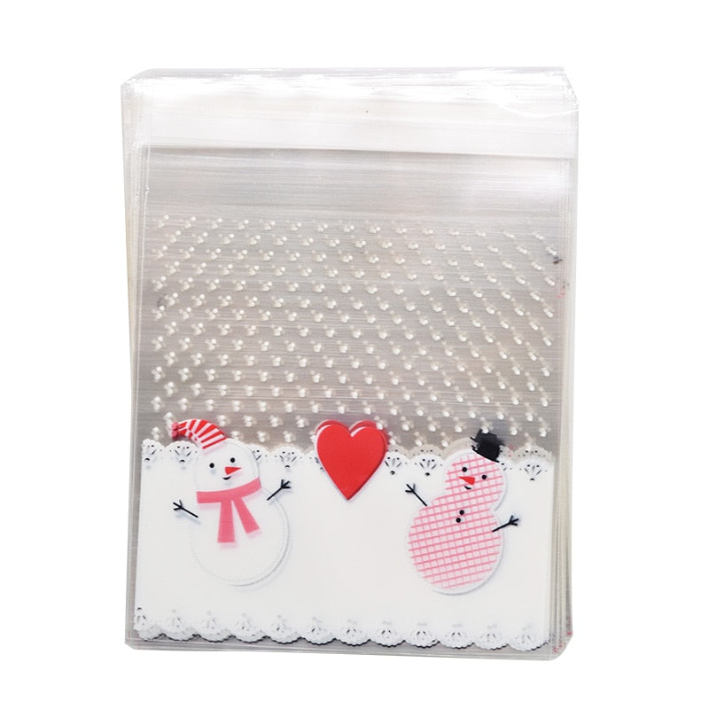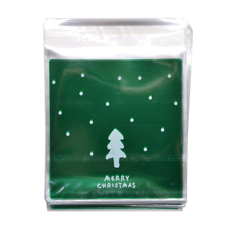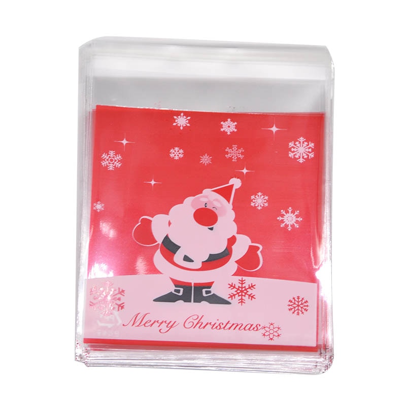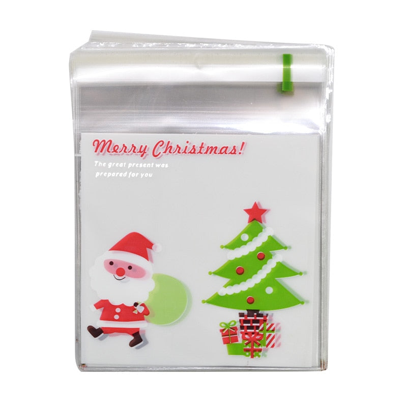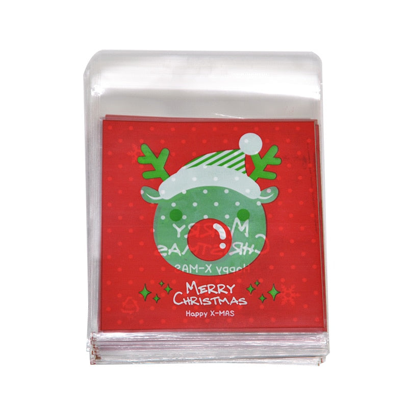 50Pcs 10x10cm Christmas Candy Cookie Gift Bags Plastic Self-adhesive Biscuits Snack Packaging Bags Xmas Party Decoration Favors