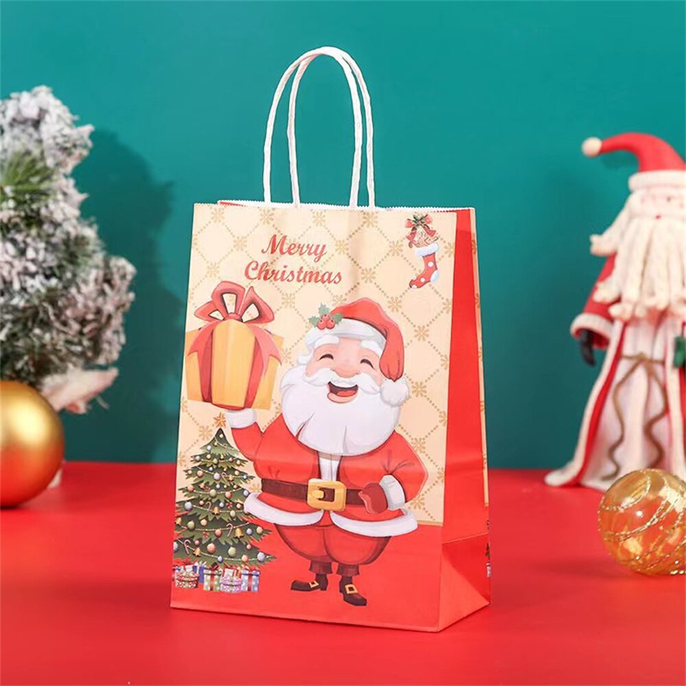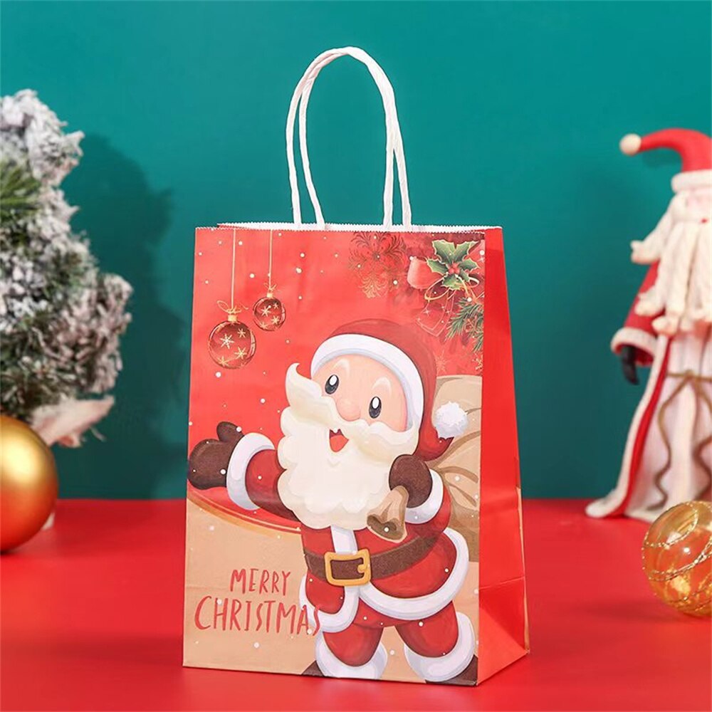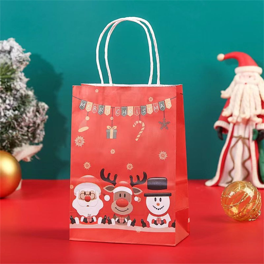 6pcs Christmas Macaron Paper Bags Candy Gift Packaging Bags Kids Xmas Birthday Party Decor Baby Shower Supplies Wedding Decor