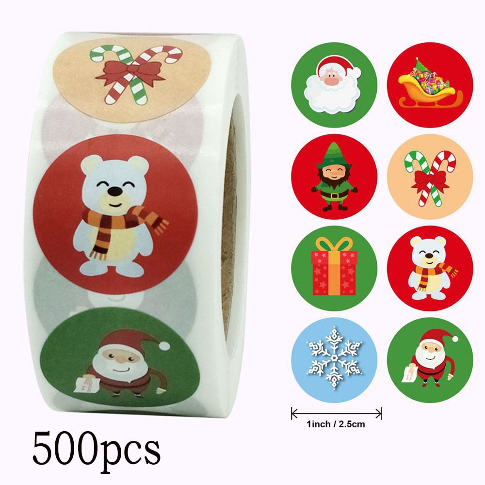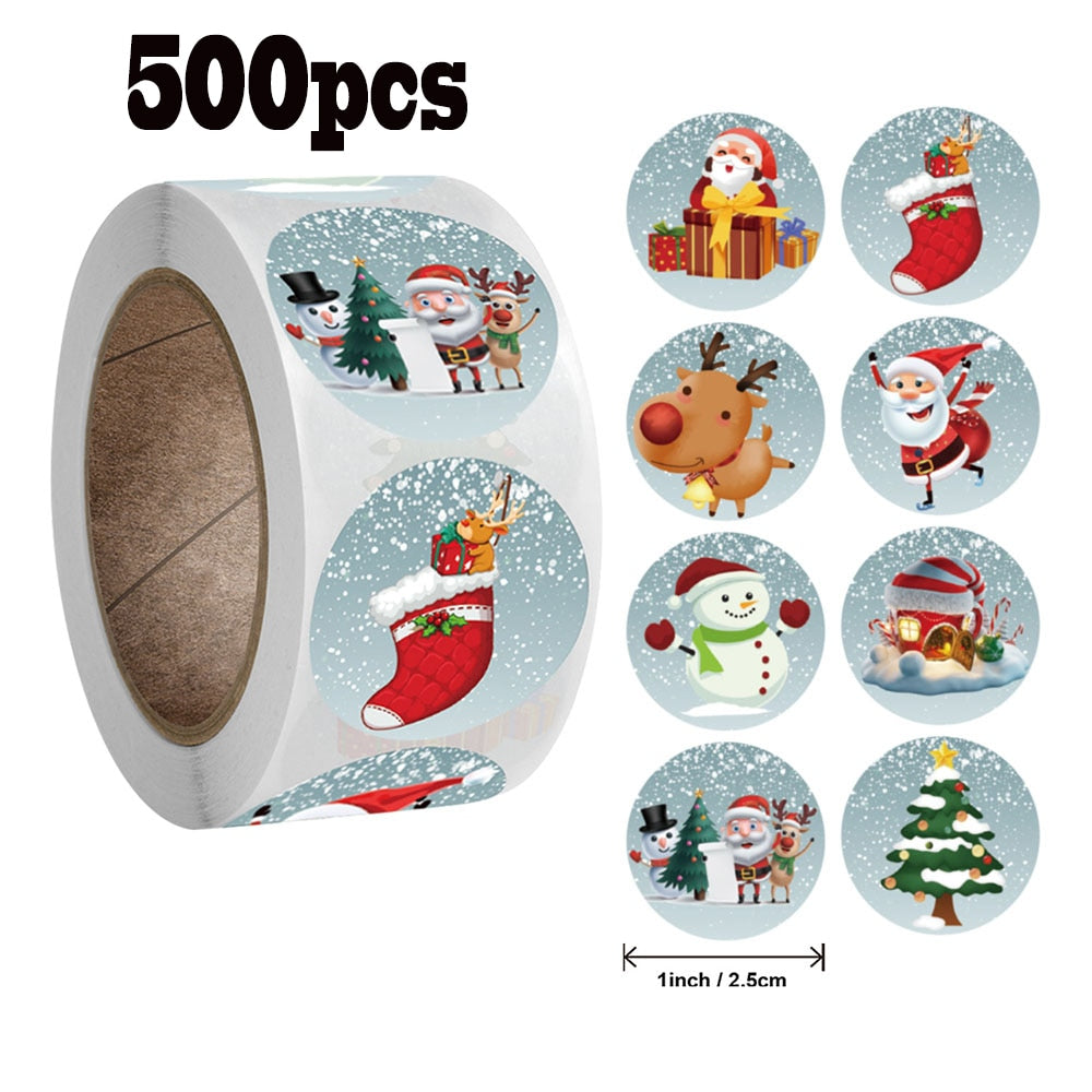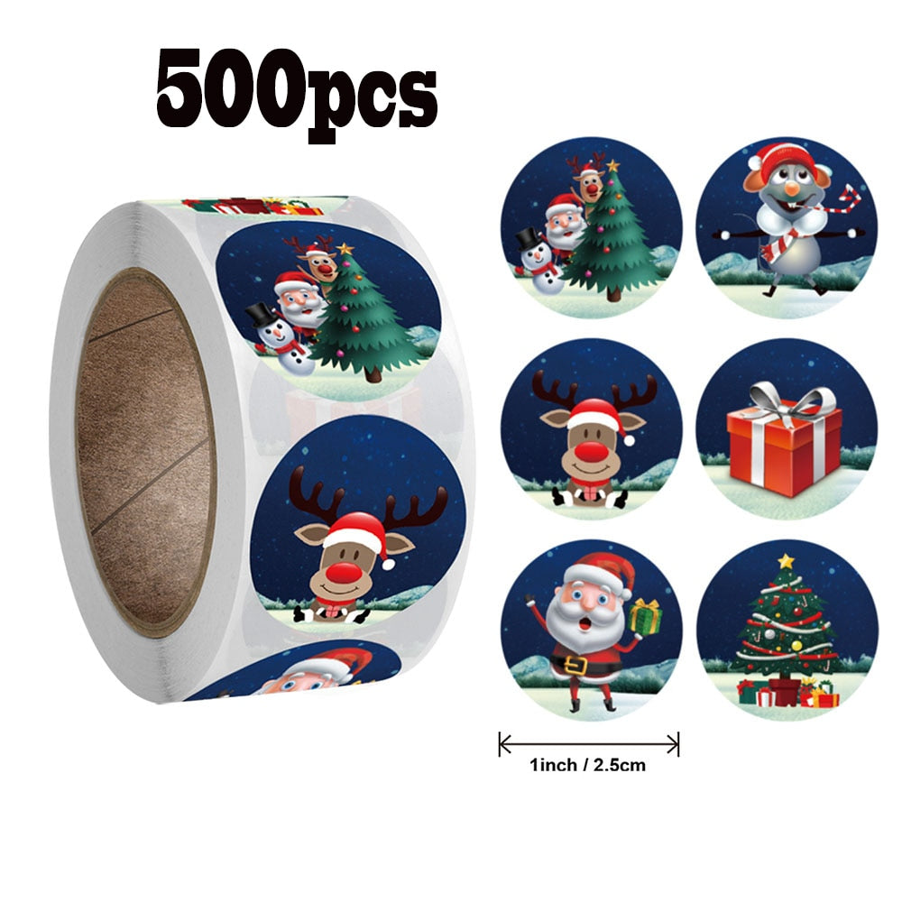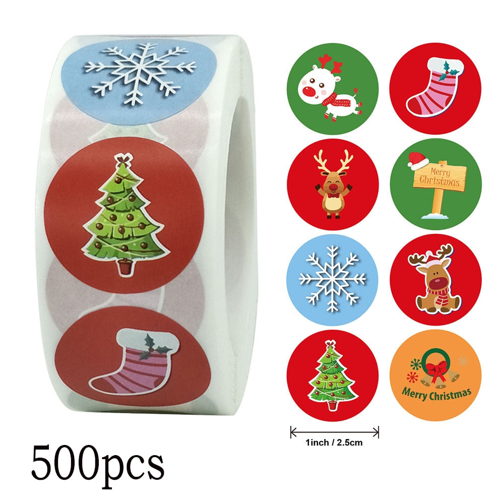 500pcs 2.5cm Christmas Seal Sticker Christmas Tree Elk Candy Bag Seal Sticker Christmas Gift Box Label Decoration 1 inch