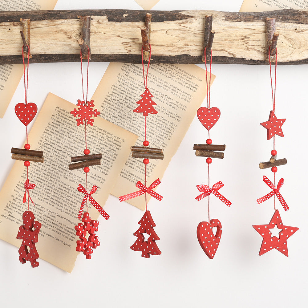 Made from high-quality wood, this Christmas wooden pendant comes in a vibrant red color with polka dot patterns. It is available in five different designs: a five-pointed star, a love heart, an angel, a small tree, and a snowflake. Each pendant weighs approximately 10g, making it lightweight and easy to hang.