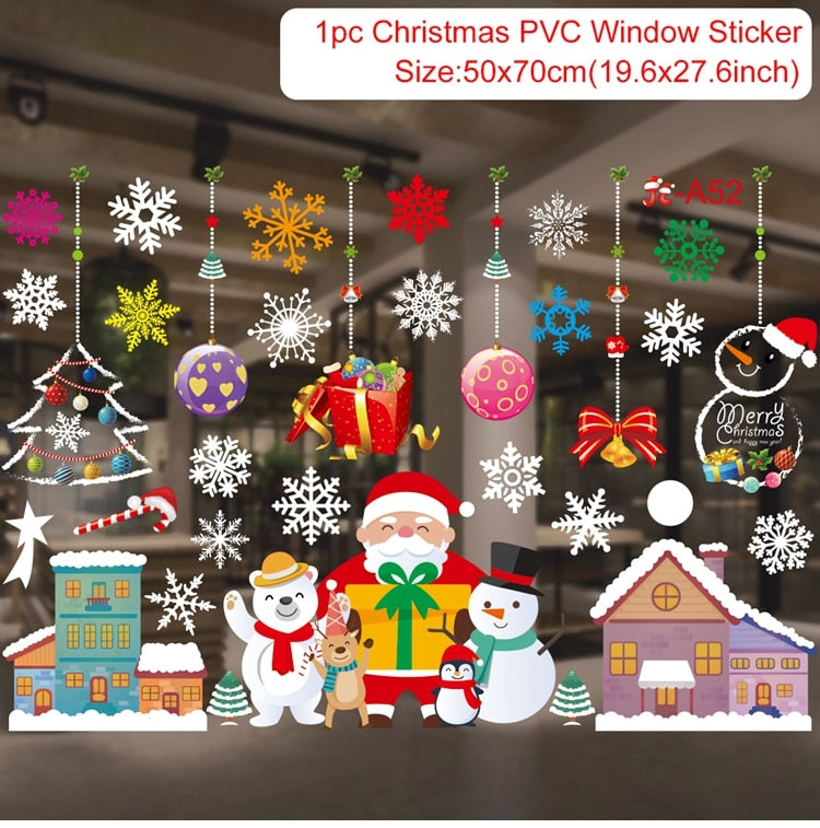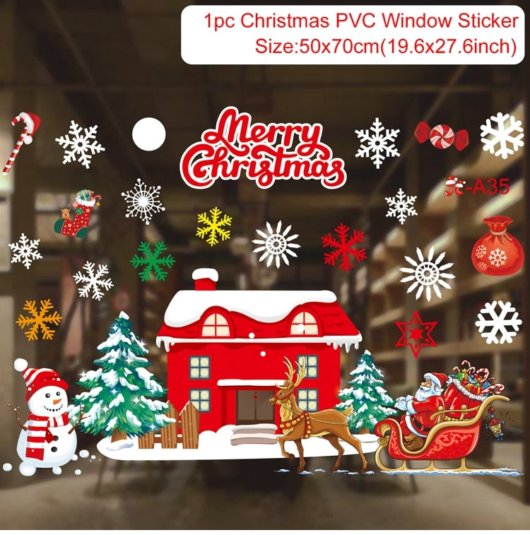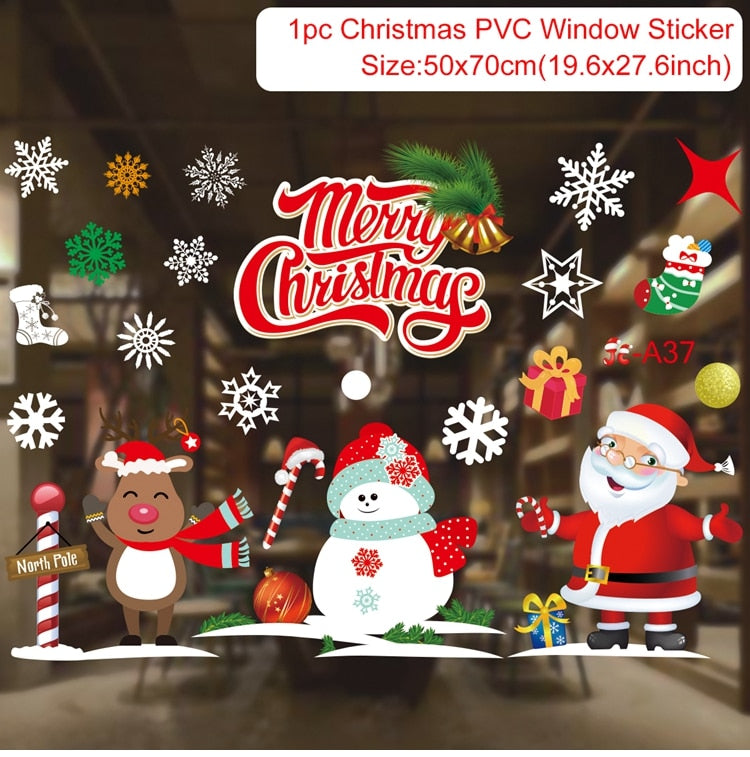 Christmas Window Stickers Merry Christmas Decorations For Home Christmas Wall Sticker Kids Room Wall Decals New Year Stickers