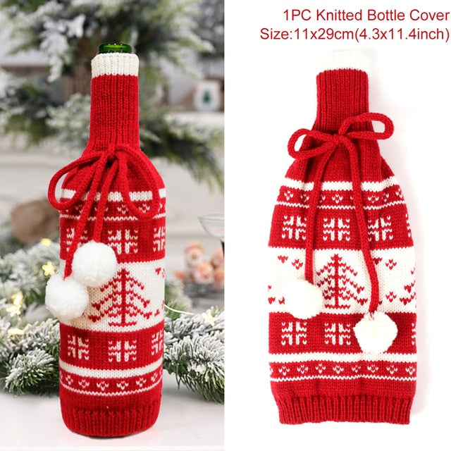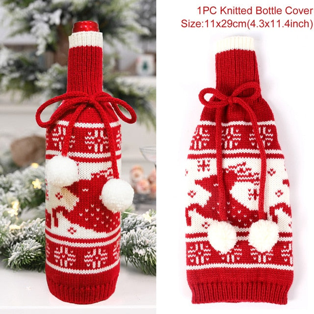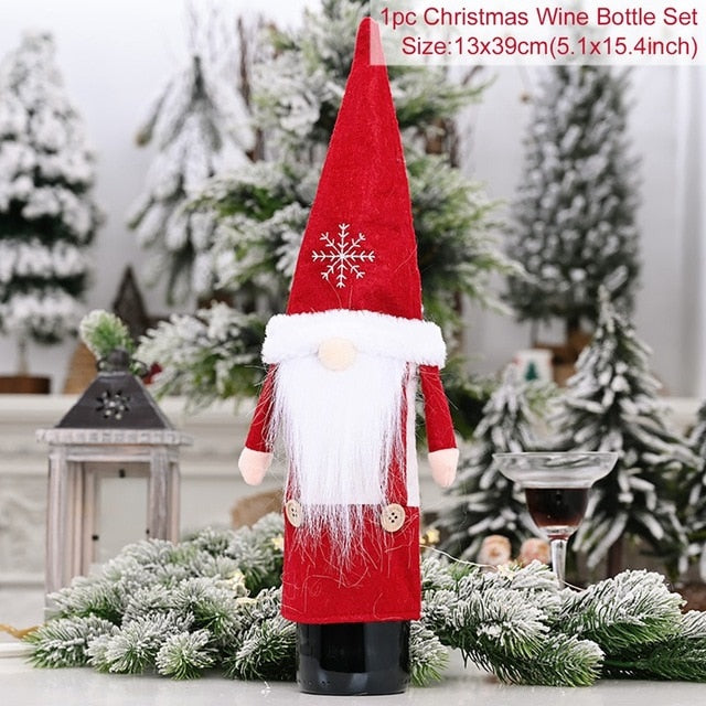 Christmas Wine Bottle Cover Merry Christmas Decor For Home 2020 Natal Noel Christmas Table Decor Xmas Gift Happy New Year 2021