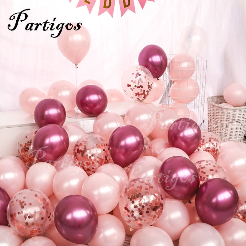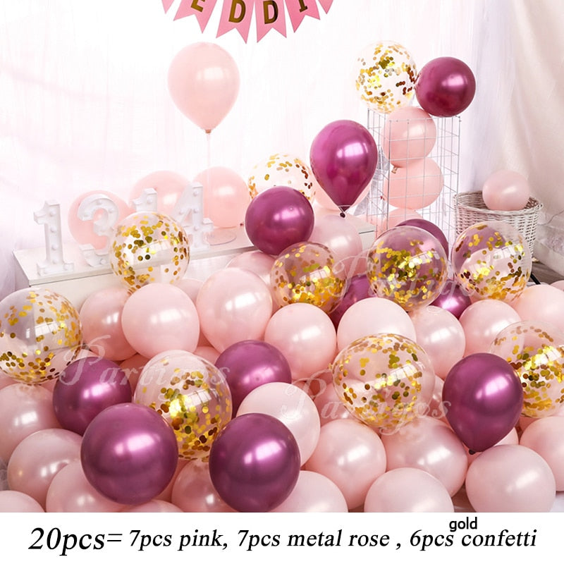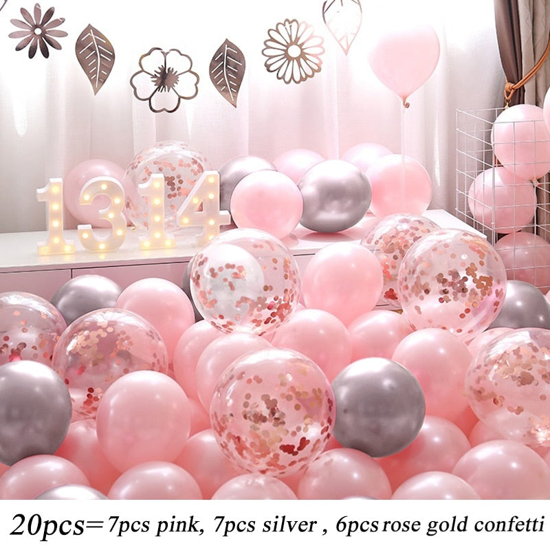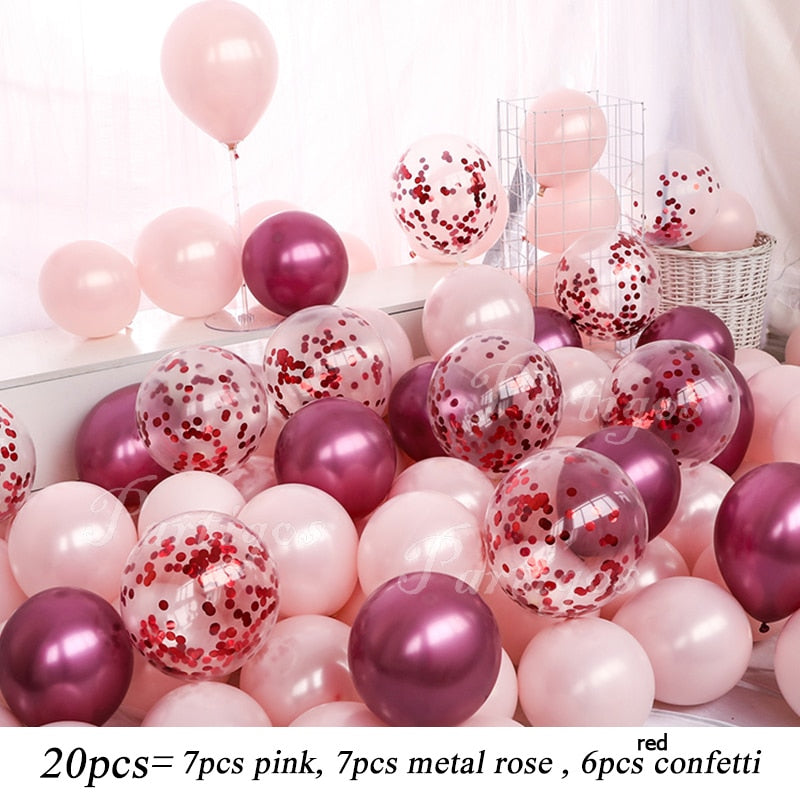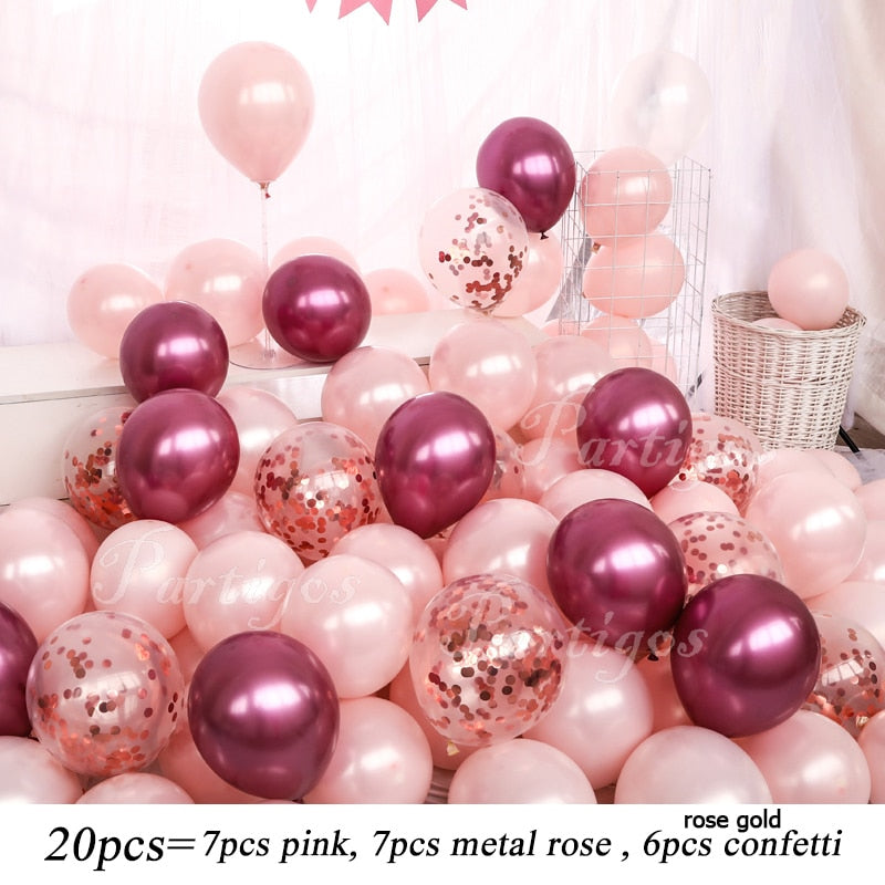 20pcs Pink Rose Gold Confetti Latex Balloons 10inch Chrome Metallic Helium Globos Valentines day Wedding Birthday Party Decor