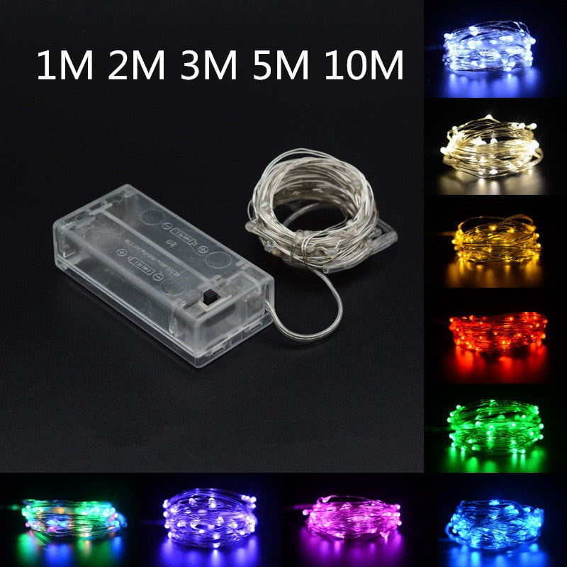 1m/2m/3m/5m/10m Copper Wire Garland LED Fairy Lights Garland Curtain Battery Power String Lights Christmas Festoon Party Wedding