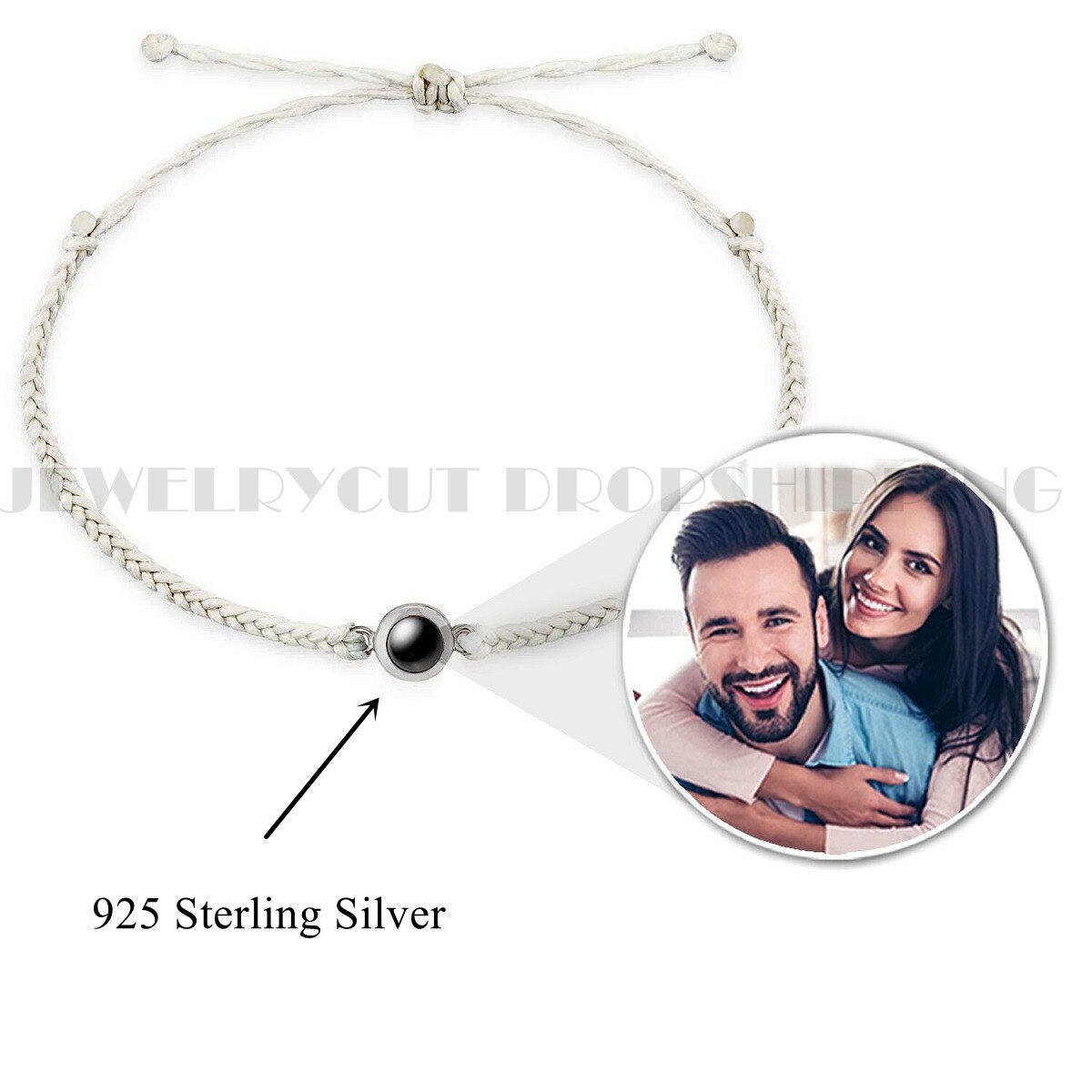 Custom Titanium Steel Projection Circle Bracelet 925 Silver Couples Personalized Photo Memorial Valentine's Day Christmas Gift