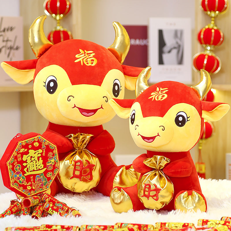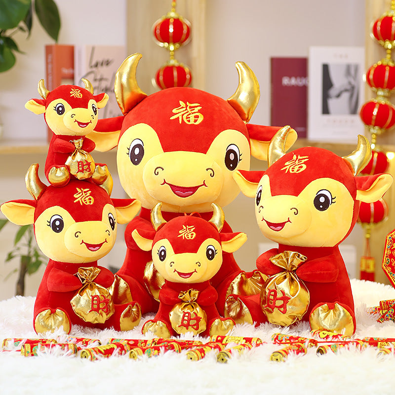 This plush toy features a cute cow design, making it an ideal gift for the upcoming New Year celebrations. As the cow is the zodiac mascot for the New Year, this doll will bring good luck and fortune to its owner.