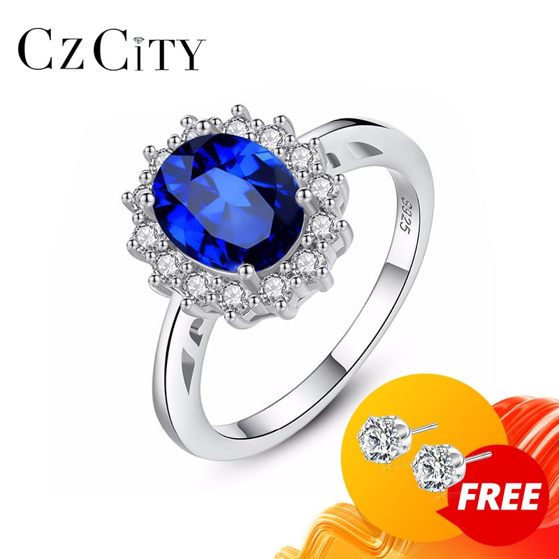 CZCITY Princess Diana William Kate Sapphire Emerald Ruby Gemstone Rings for Women Wedding Engagement Jewelry 925 Sterling Silver