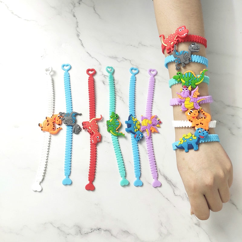 6pcs Dinosaur Party Rubber Bangle Bracelet Baby Shower Decorations Birthday Party Decorations Kids Gifts Jungle Party Supplies