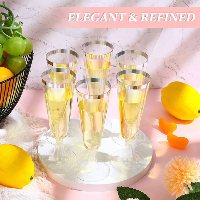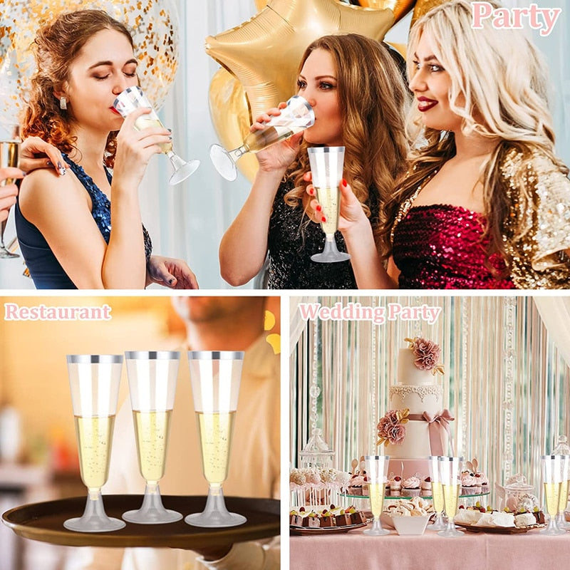 - Occasion: Brighten up your event with disposable champagne glasses. With such an elegant look, they are perfect for any type of event, come and sip your drink with these stunning sparkling champagne flutes to add a unique touch to your elegance!
