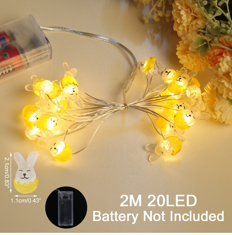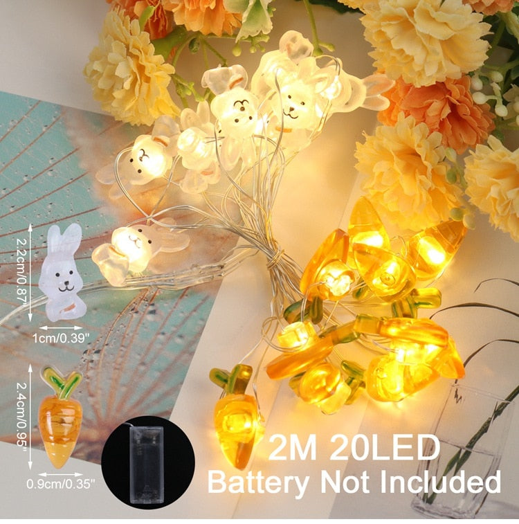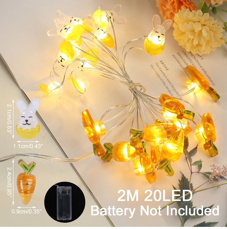 Easter LED Bunny String Lights Easter Decoration For Home Carrot Rabbit Fairy Light Supplies Happy Easter Gifts Party Favor