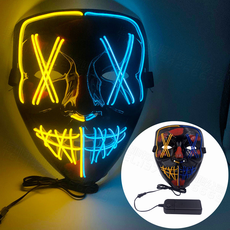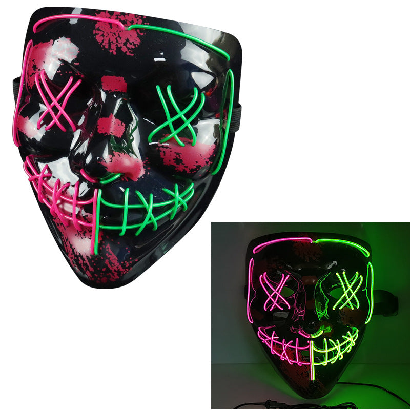 The EL Halloween Colorful Mask Dance Equipment comes in ten vibrant light colors, allowing you to choose the one that best matches your costume or personal style. From classic black with blood-orange accents to eye-catching combinations like black with blood-pink and ice blue, the options are endless.