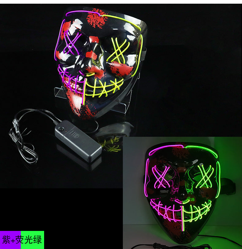H: Glowing Mask MJ072_Black V with Blood_Purple Left + Fluorescent Green Right