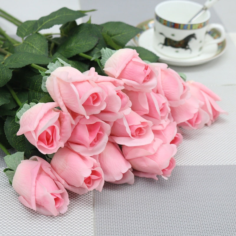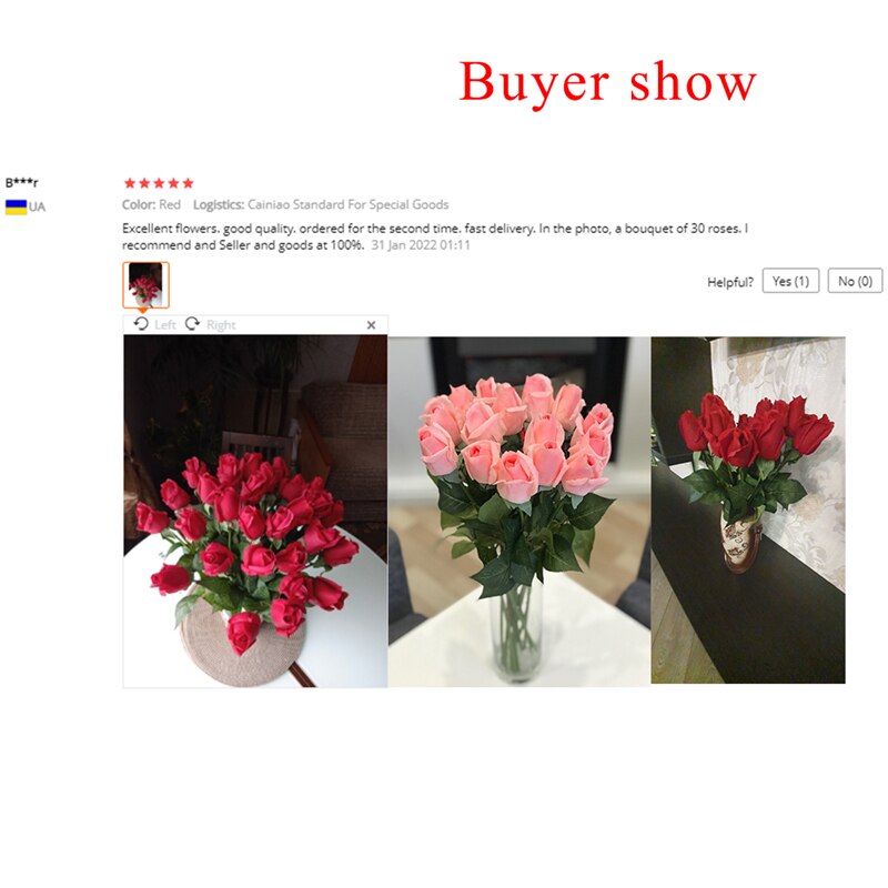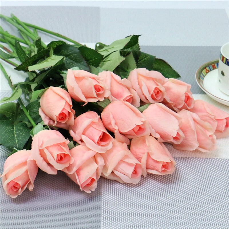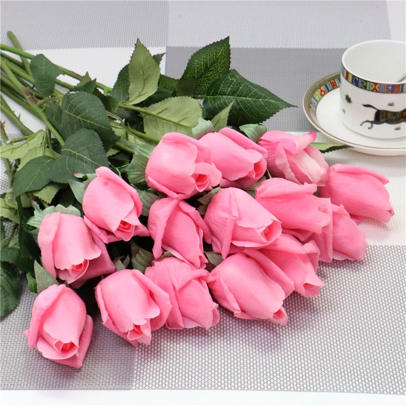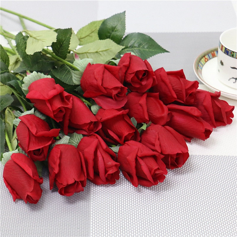 15pcs/lot Artificial Flower Real Touch Moisturizing Rose Home Decoration Fake Flower Wedding Bride Bouquet Valentine's Day Gift