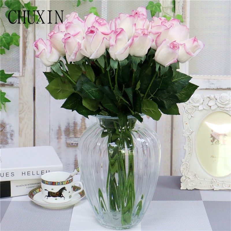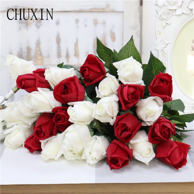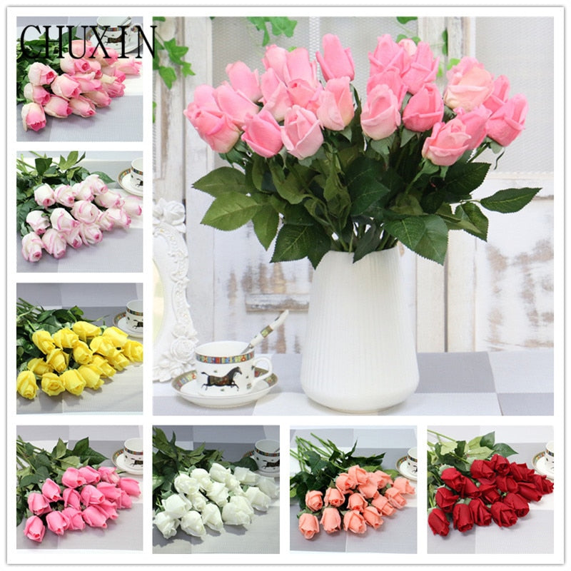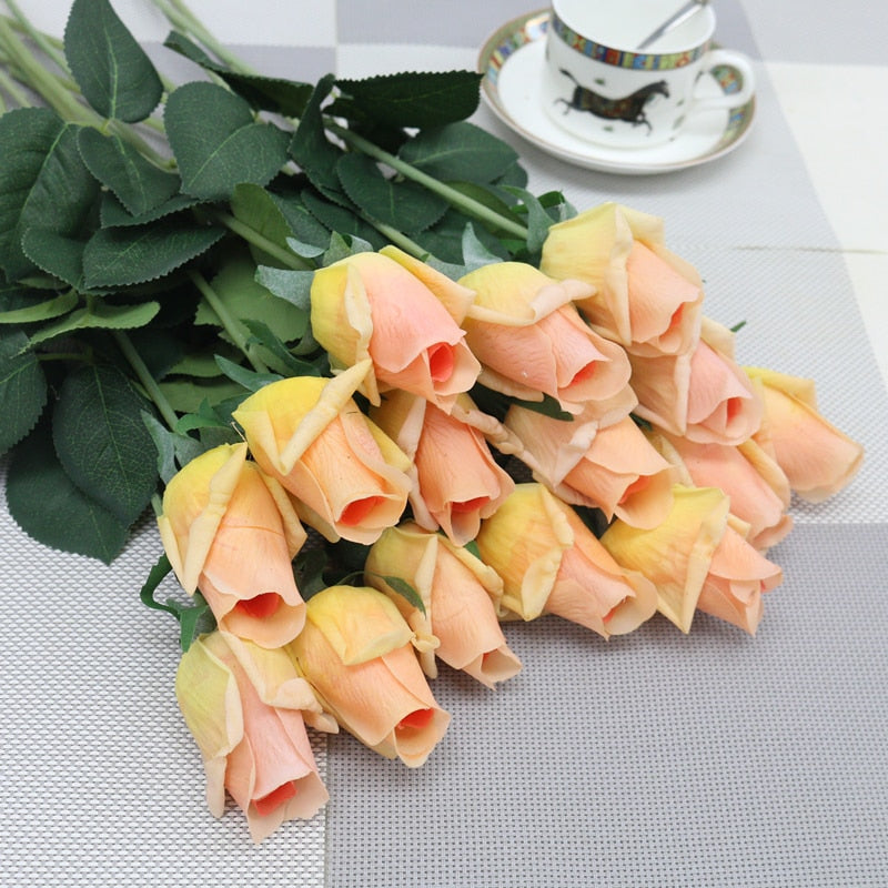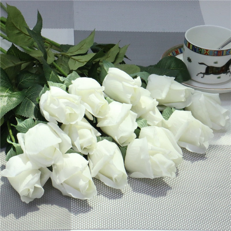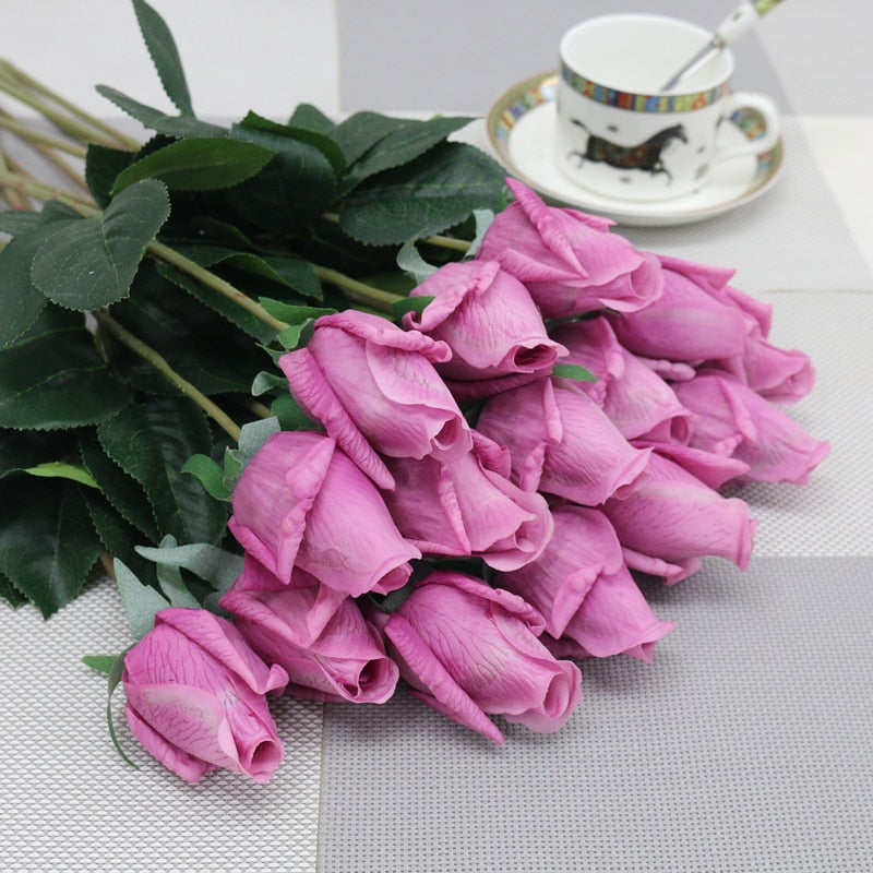 15pcs/lot Artificial Flower Real Touch Moisturizing Rose Home Decoration Fake Flower Wedding Bride Bouquet Valentine's Day Gift