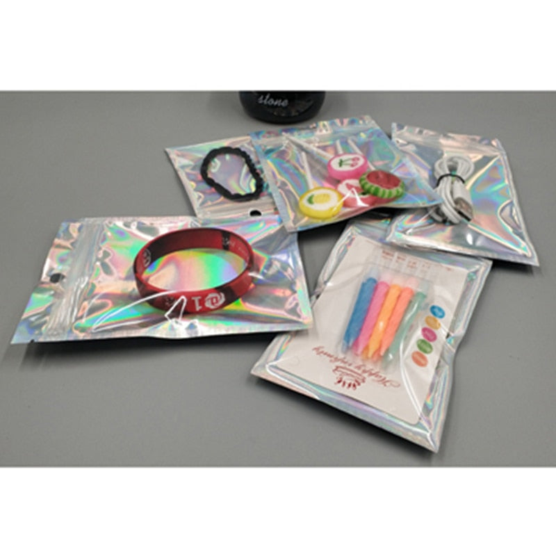 25Packs Foil Ziplock Bags Resealable Smell Proof Bags Aluminum Foil Pouch Mylar Ziplock Bags Holographic Rainbow Color