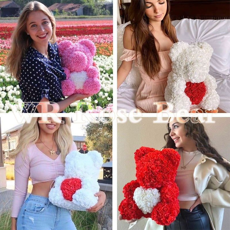 Mother's Day Gifts for Her Red Bear Rose Artificial Flowers Teddi Bear of Rose Wedding Decor Birthday Gift for Women Girlfriends