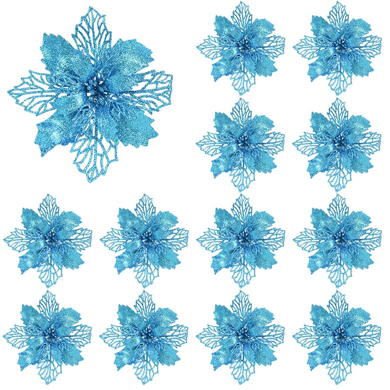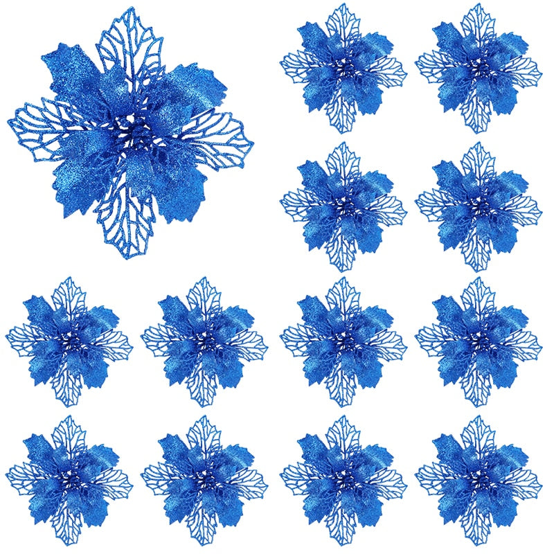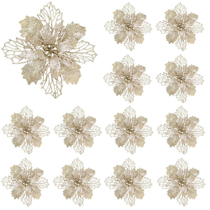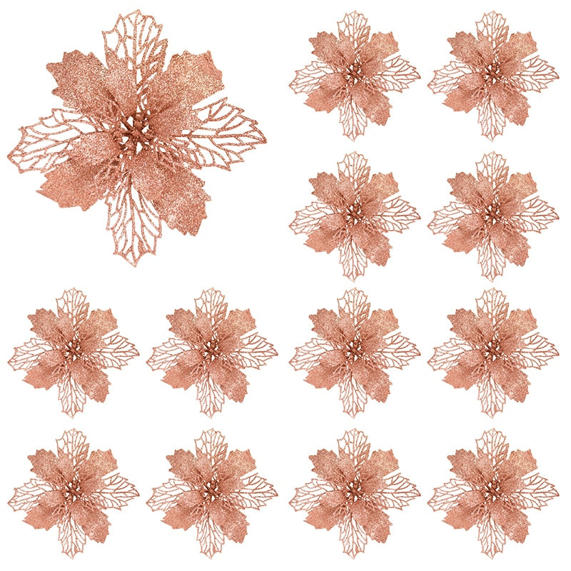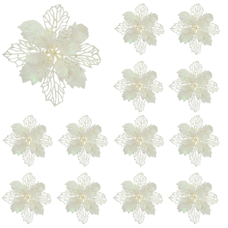 10pcs Glitter Artificial Poinsettia Flower with Berry Wedding New Year Christmas Cherry Flower Decorations Xmas Tree Ornament