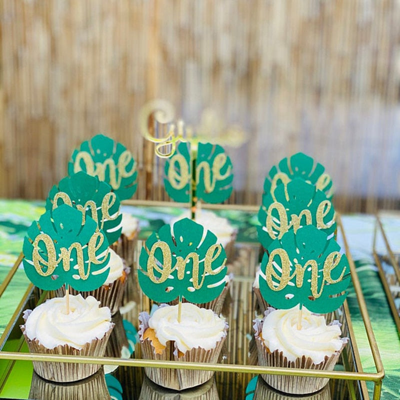 Glitter Gold Wild one Happy Birthday Cake Topper Boy Girl 1st First Birthday Party Cupcake Topper Jungle Safari Party Decoration