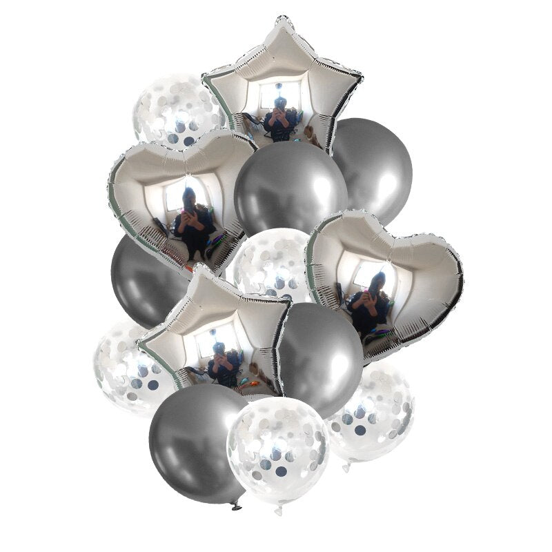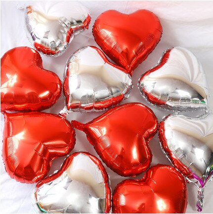 15pcs/lot 18inch Gold Silver Red Heart Love Balloon Pure Color Foil Helium Baloon For Wedding Birthday Party Decoration Supplies