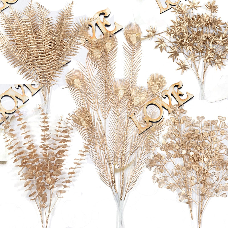 Golden Artificial Plants Simulation Plastic Plants for Christmas Decor Home Living Decoration Party Wedding Flower Arrangement