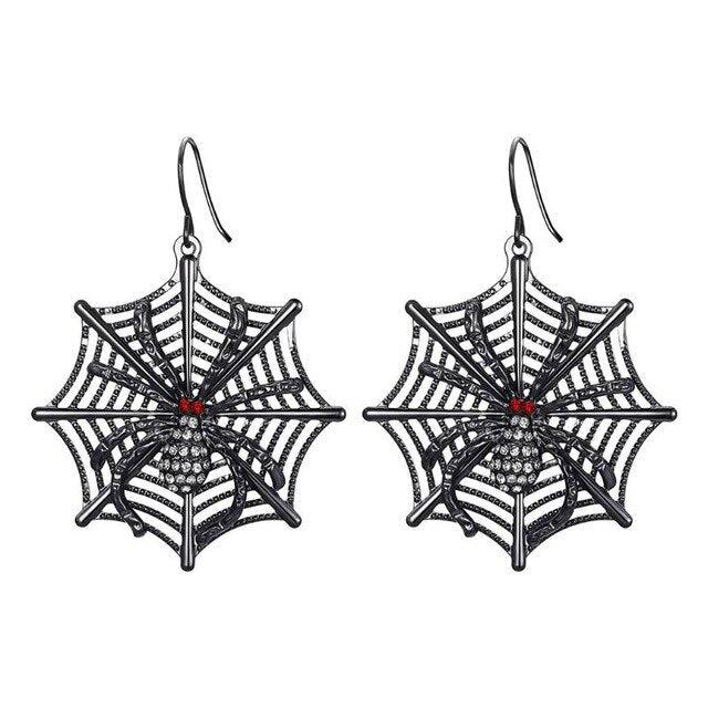 Gothic Punk Black Spider Web Drop Earrings Halloween Party Accessories Jewelry Gifts for Women