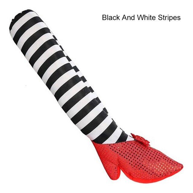 These evil witch thigh Halloween decorations are sure to add a touch of humor and playfulness to your spooky festivities. Made from durable stitched nylon, these legs can be used year after year to create a unique and eye-catching effect in your front yard.