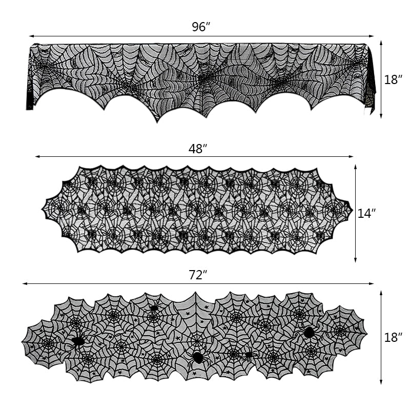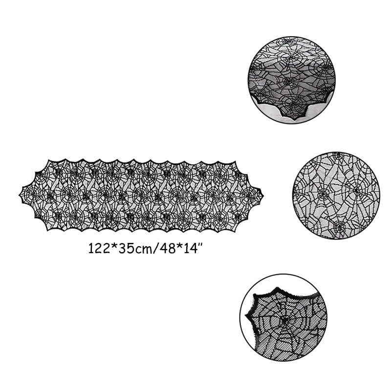 Halloween Decoration Lace Spider Web Skeleton Skull Tablecloth Black Fireplace Mantel Scarf Event Party Decoration Supplies