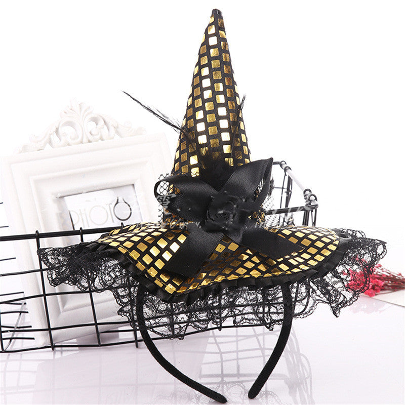 Halloween Decoration Witch Hat Headband, Masquerade Show Lace Sequin Hat Headband