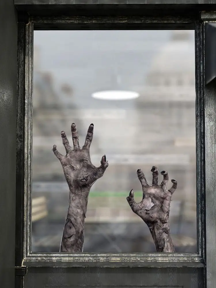 Halloween Ghost Hand Wall Sticker 3D View Scary Ghost Hand Horror Decals Removable Self-adhesive PVC Wall Stickers Window Decor