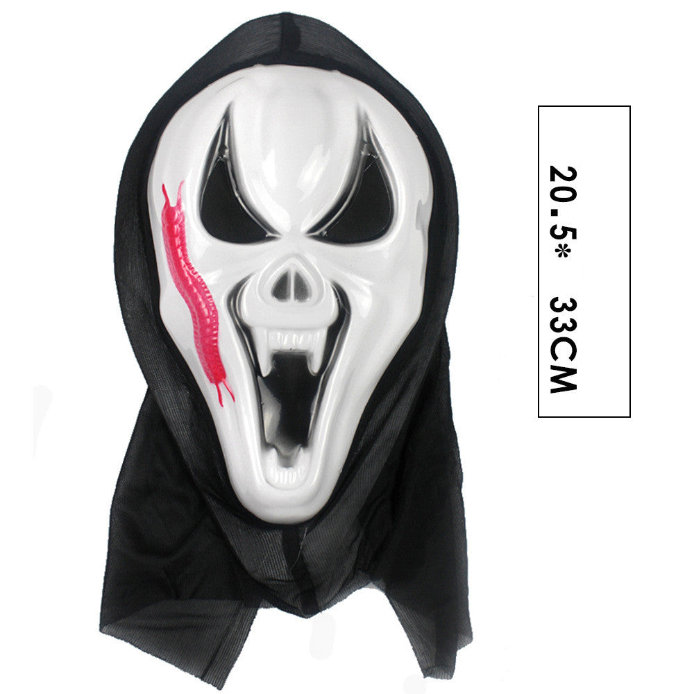 Get ready to spook everyone this Halloween with our terrifying Halloween Horror Skull Scream Retro Mask! This mask comes in various chilling designs, including white screaming, white with insects, white red lips, white round eyes, white tattoos, white witches, red screaming, red round eyes, red foreheads, red insects money, red unlimited money, and red witch money. Made from high-quality plastic and gauze, this mask is not only durable but also comfortable to wear. With a size of 20*35cm, it fits most adult faces perfectly.