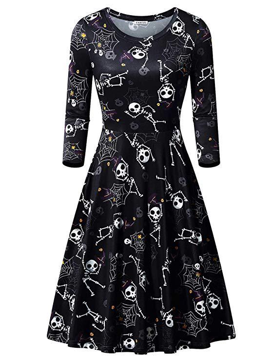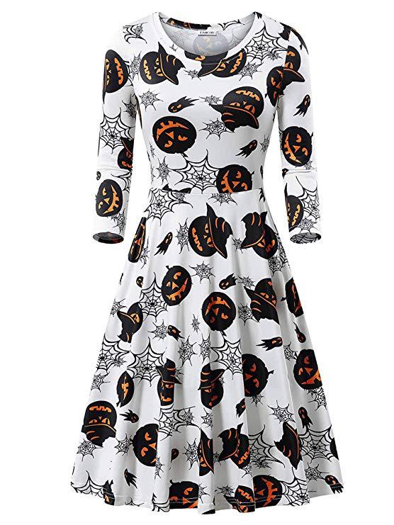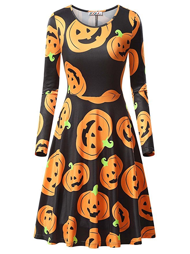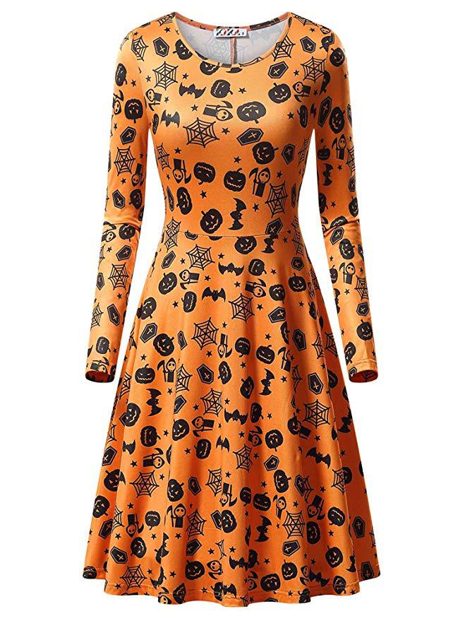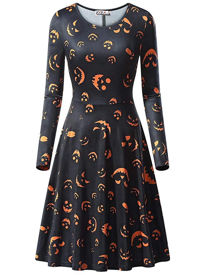 Featuring a round neck and long sleeves, this dress is perfect for the colder weather during the Halloween season. The middle waist design adds a flattering touch to your silhouette, making you look effortlessly stylish.