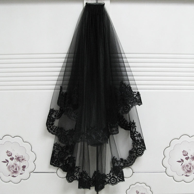 The black color adds a touch of elegance and mystery, making it a must-have for Halloween or any themed event. Don't miss out on this beautiful and versatile accessory - order your black lace veil today!