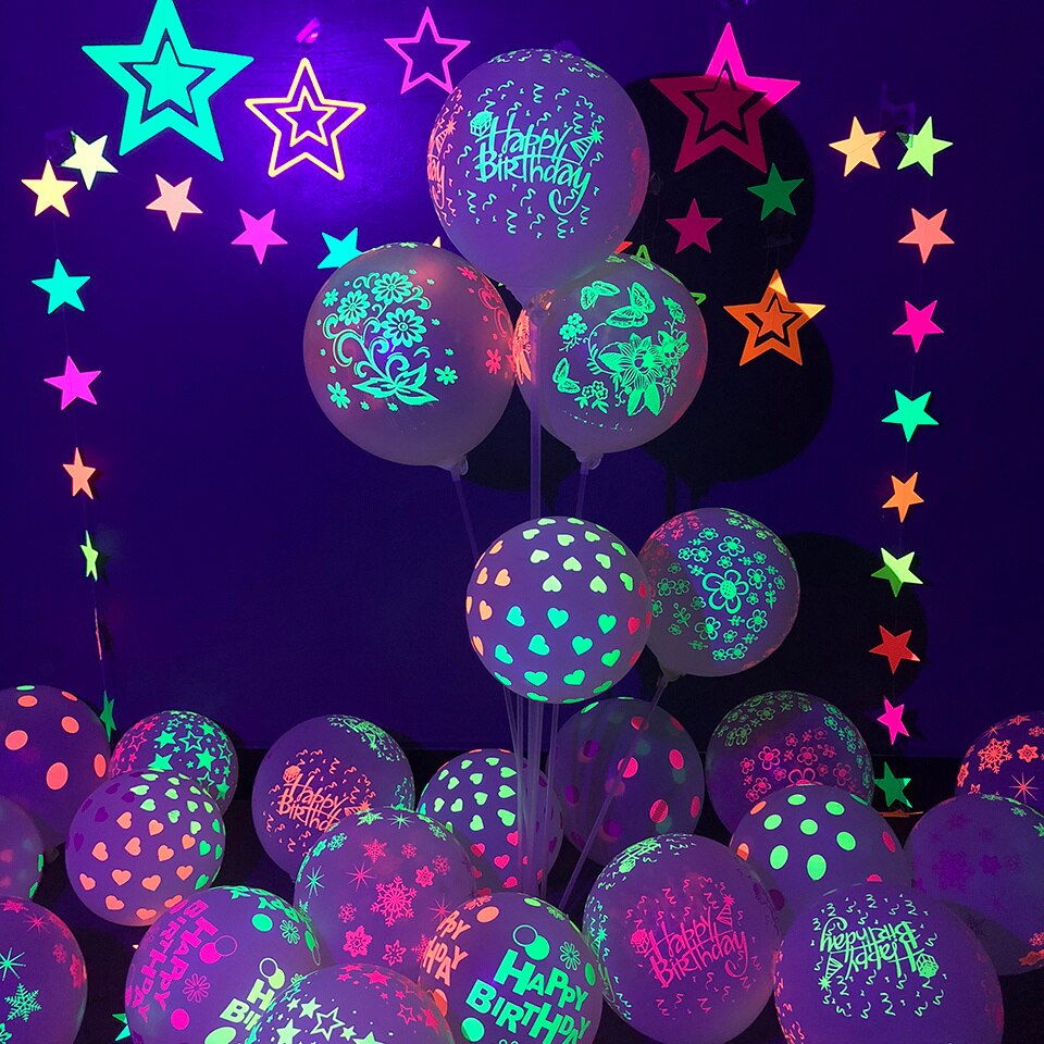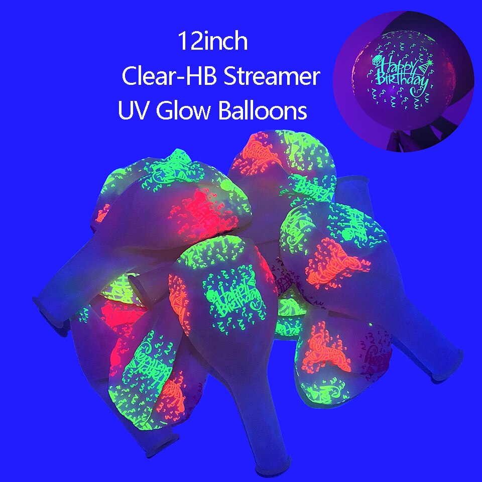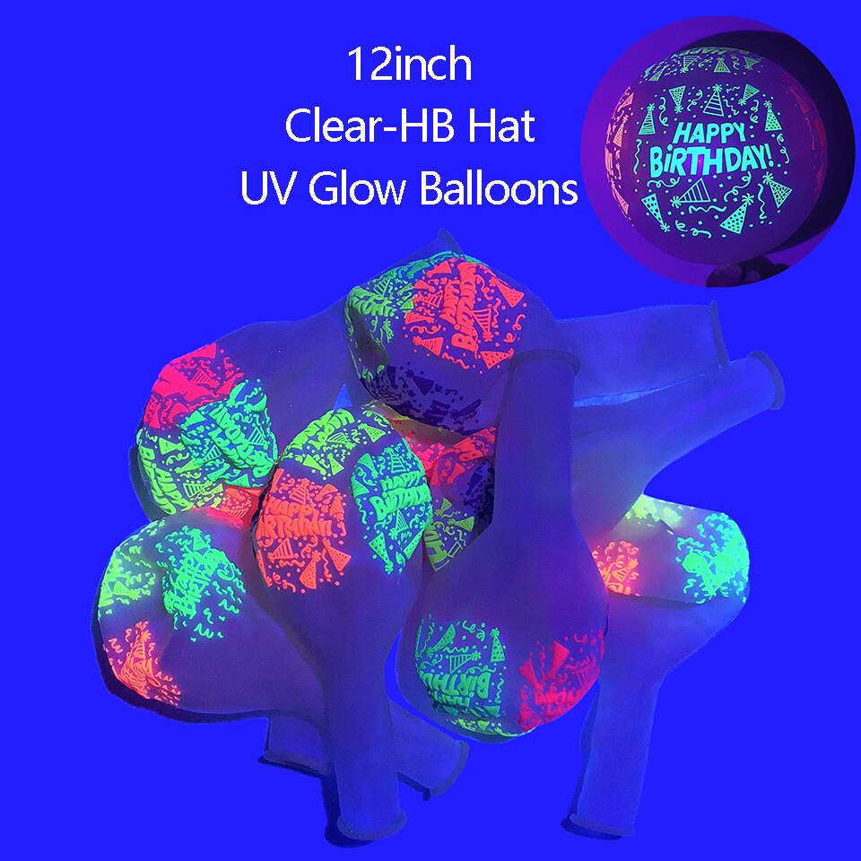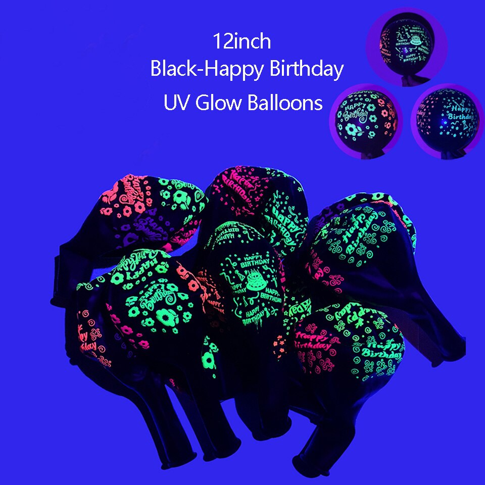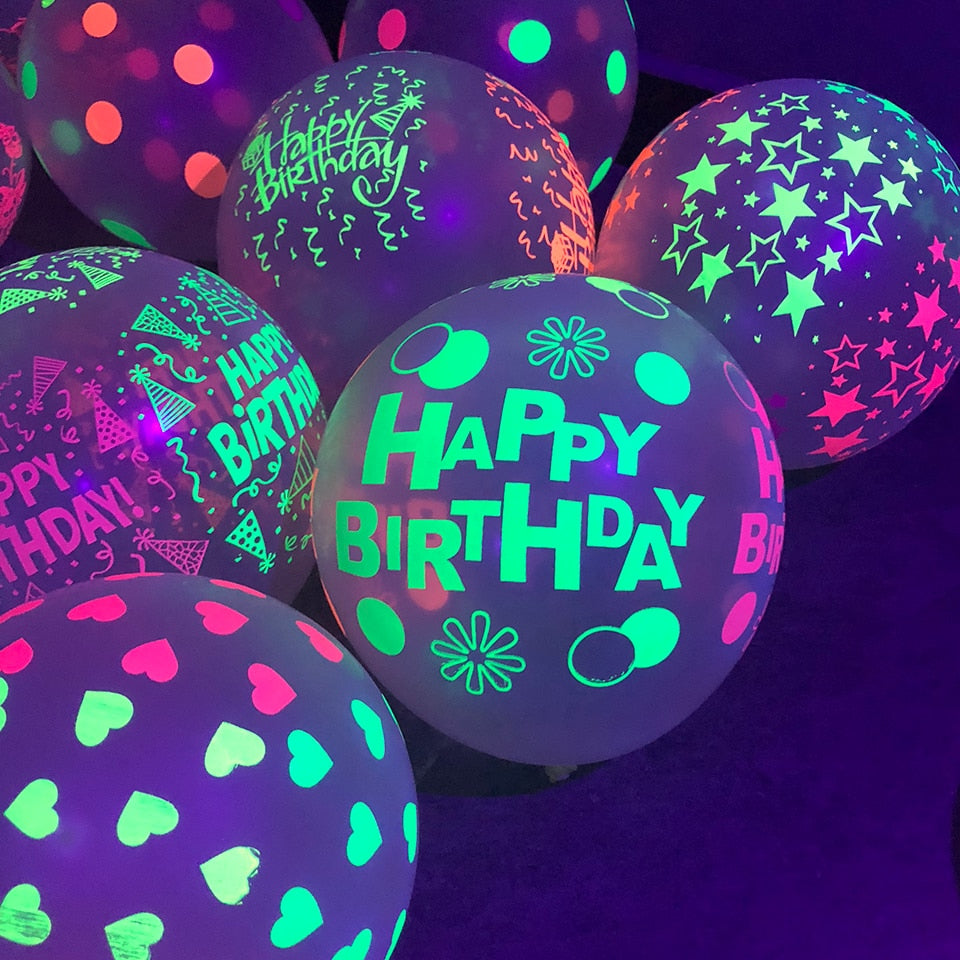 Happy Birthday Latex Balloons Glow In The Dark UV Glow Balloons Blacklight Reactive Neon Xmas Party Kids Birthday Luminous Decor