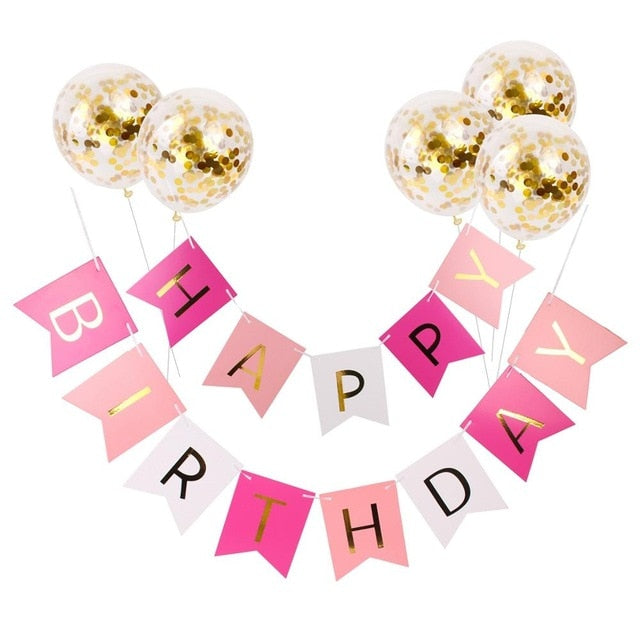1set Happy Birthday Letter Banner Rose Gold Confetti Balloons Baby Shower Birthday Party Decorations Boy Girl Kids Party Favors