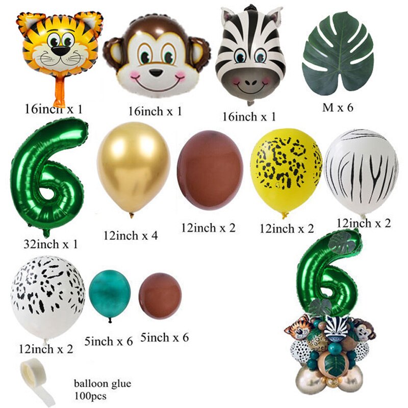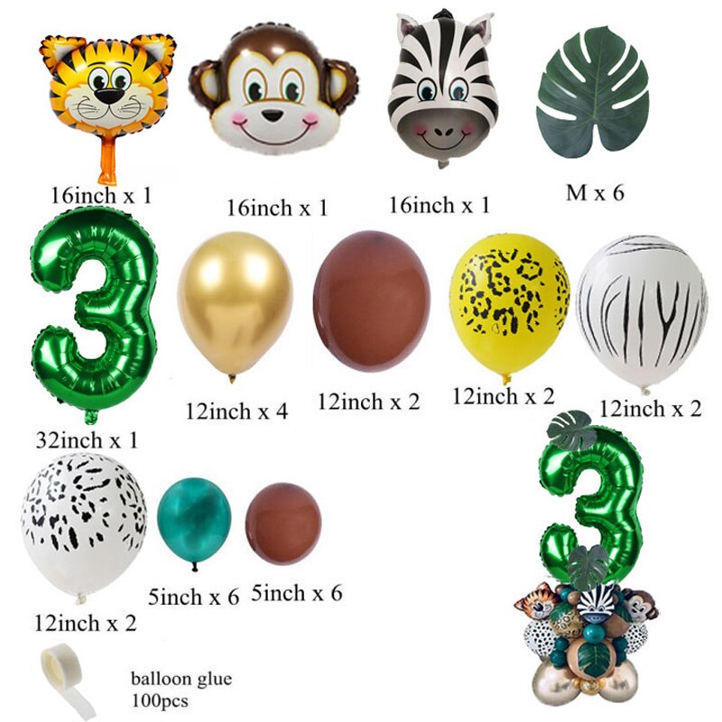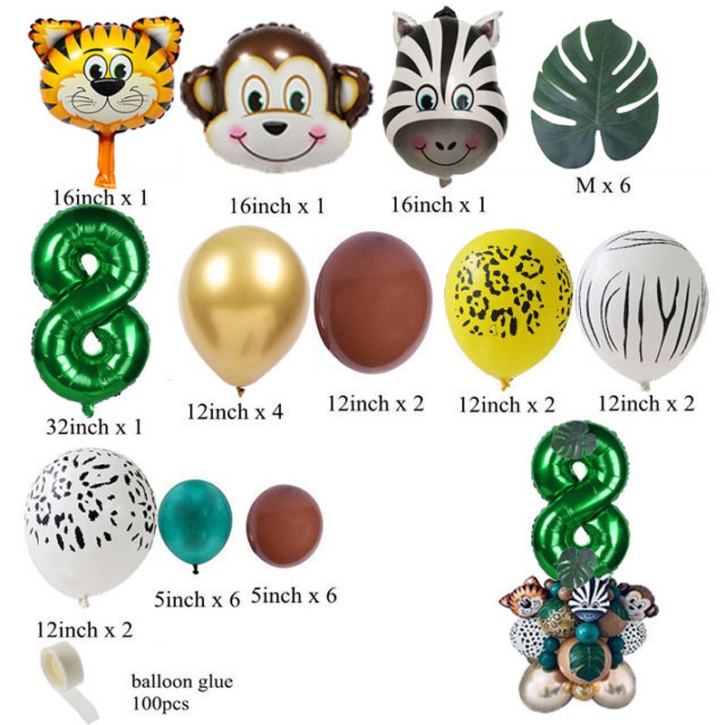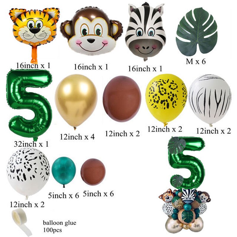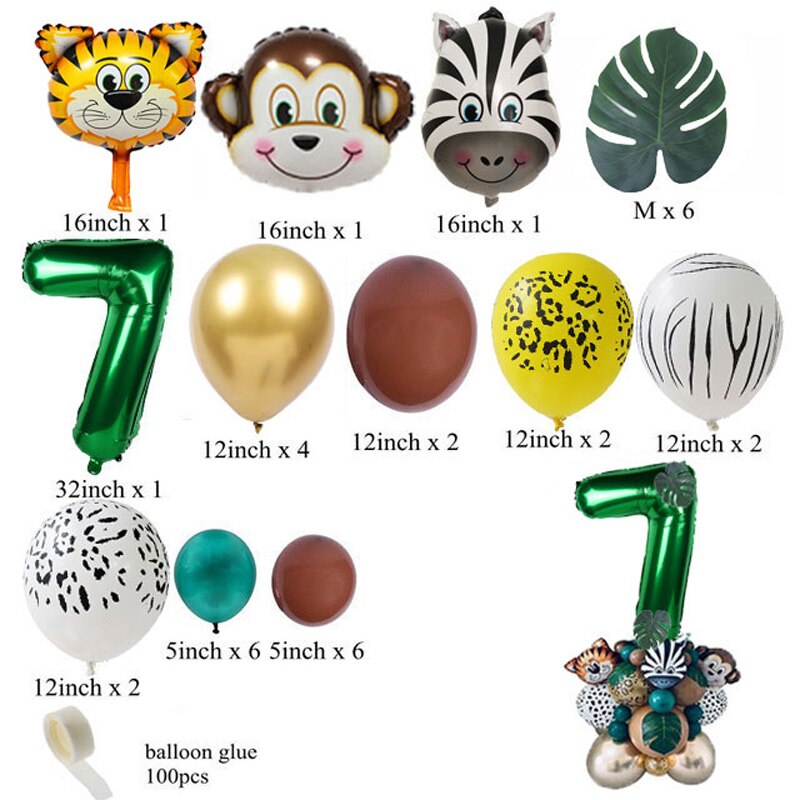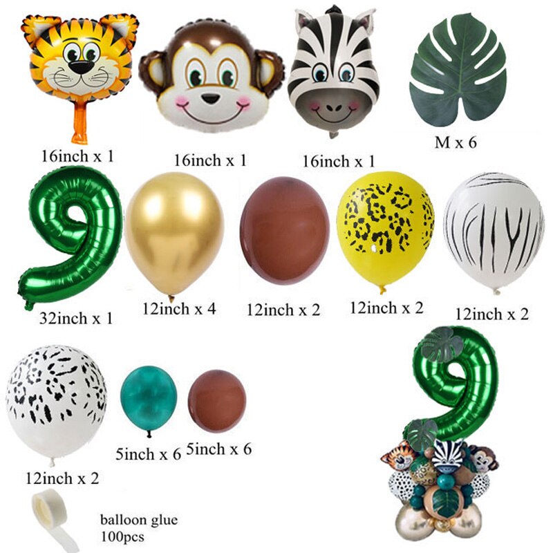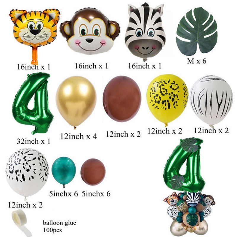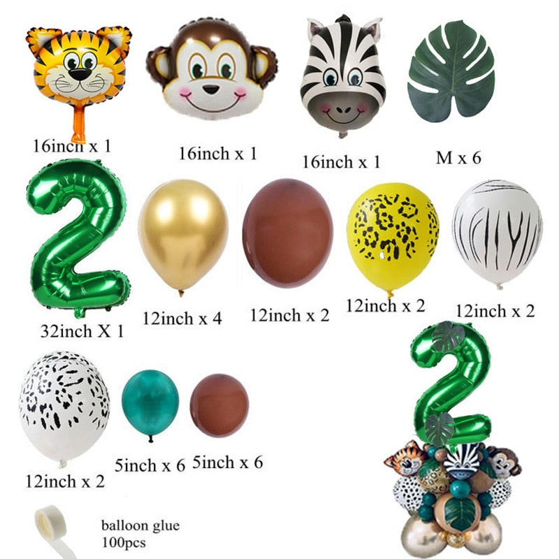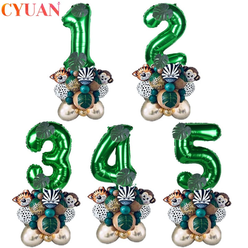 35pcs Jungle Safari Party Animal Digital Balloons Set Kids 1 2 3 4 5 6 7 8 Years Birthday Party Decoration Forest Party Supplies