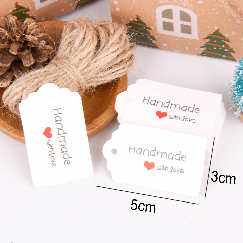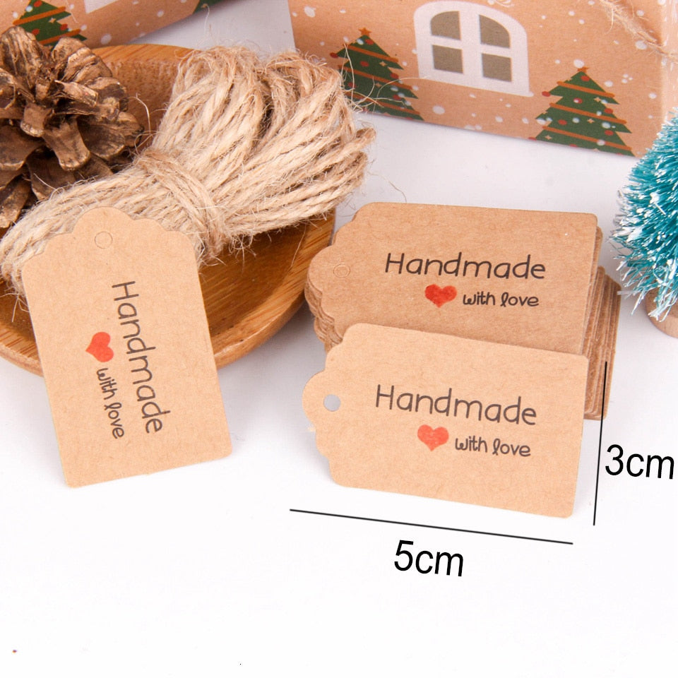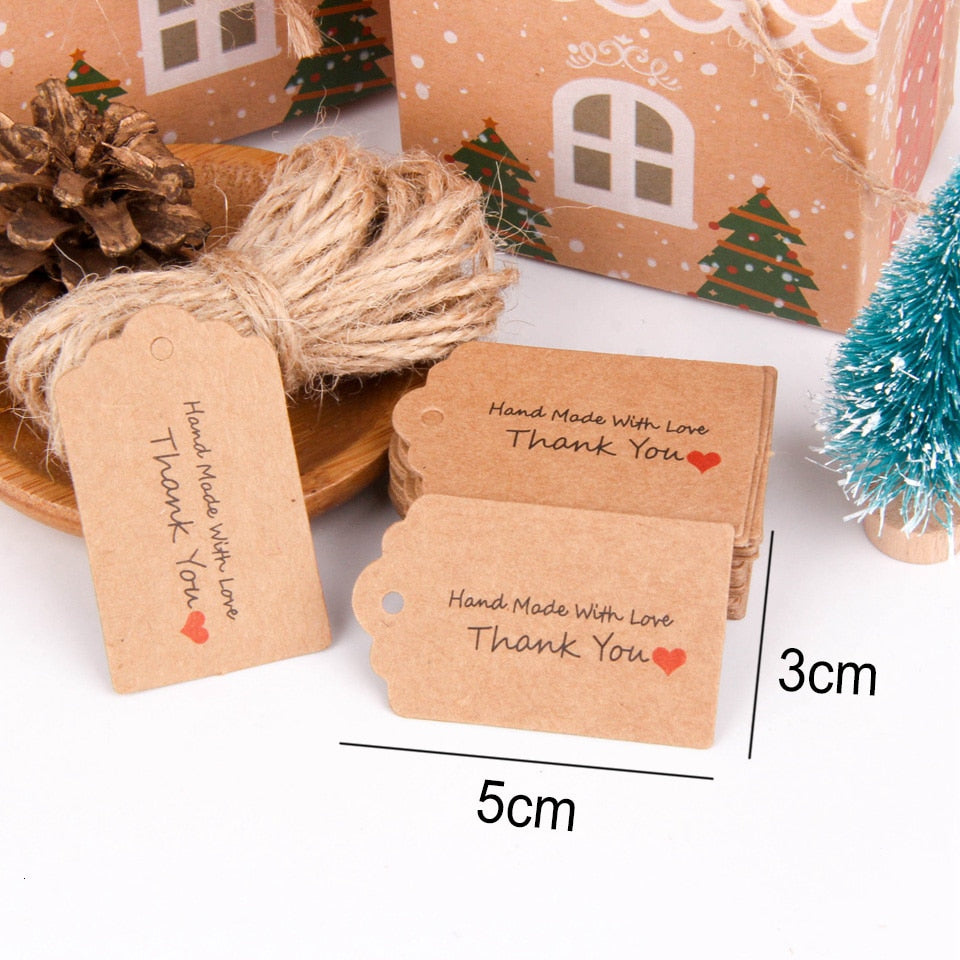 50PCS Kraft Paper Tags DIY Handmade/Thank You Multi Style Crafts Hang Tag With Rope Labels Gift Wrapping Supplies Wedding Favors