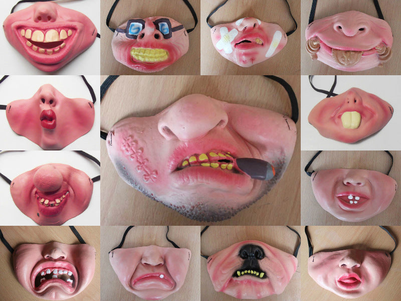 Choose from a variety of fun and stylish designs to suit your taste. Our collection includes masks with big front teeth, bleeding effects, cocked lips, a row of teeth, long chin, witch, big nose, kiss your mouth, rice, 2 teeth, one tooth, scars, dog nose, tooth loss, smoking, and pig nose. Each mask is uniquely crafted, so the size may vary slightly, but they all measure approximately 16X13CM.