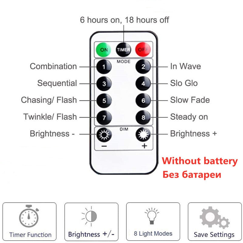 LED String Lights Remote Control Copper Wire Battery Powered 8Mode Outdoor Fairy Garland Christmas New Year Decoration Festoon
