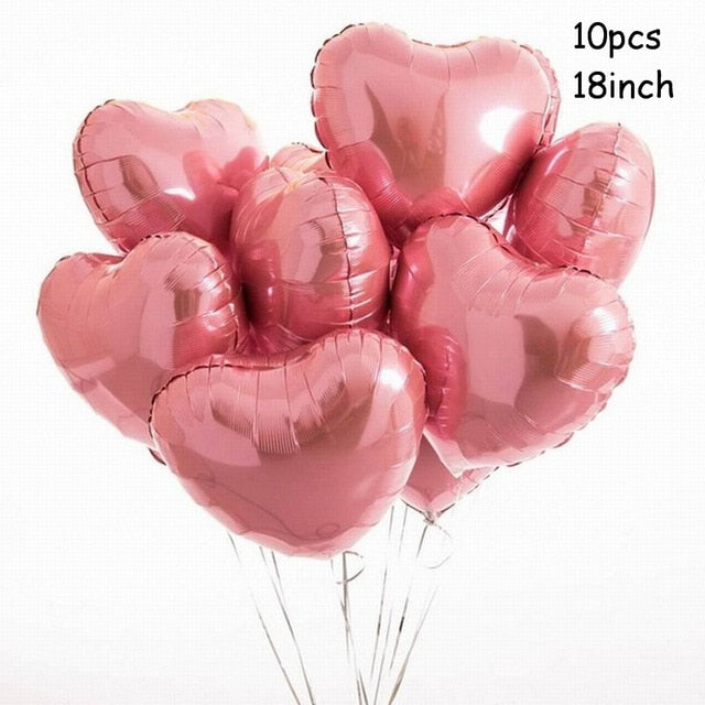 10pcs 18inch Rose Gold Red Pink Love Foil Heart Helium Balloons Wedding Birthday Party Balloons Valentine's Day Globos Supplies
