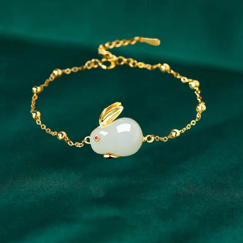 Style 4: Bracelet: copper bead chain+jade rabbit