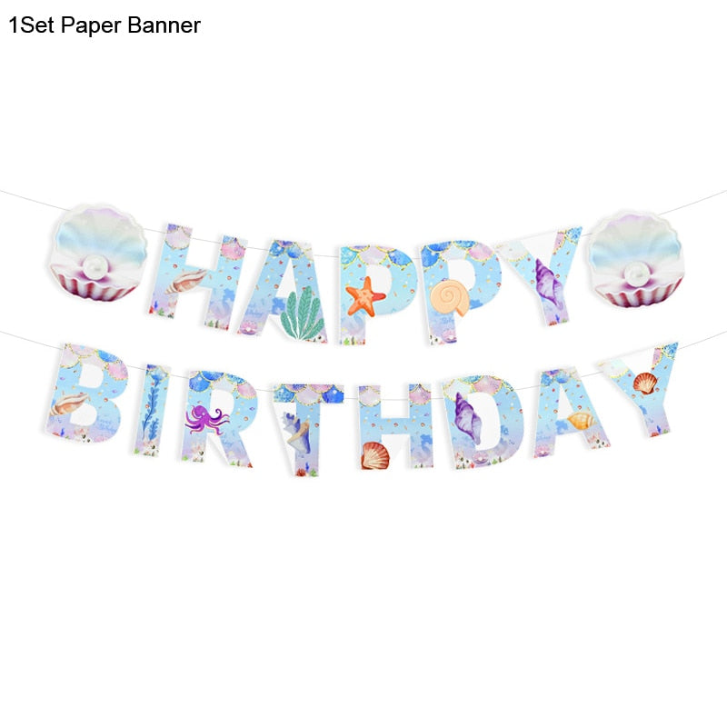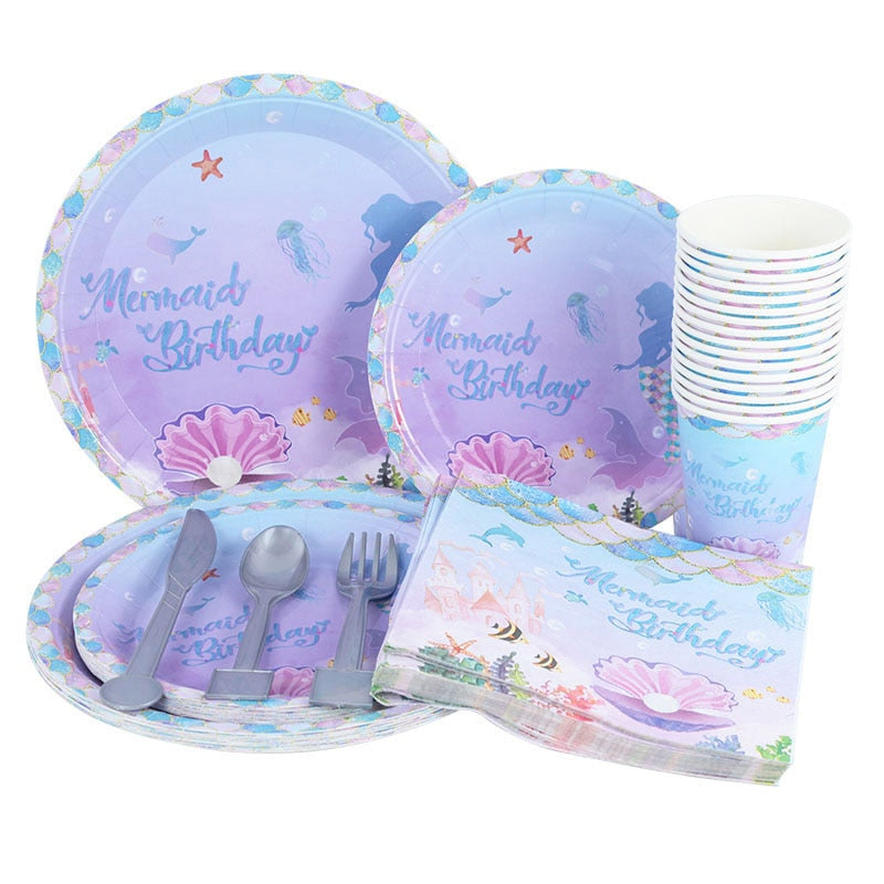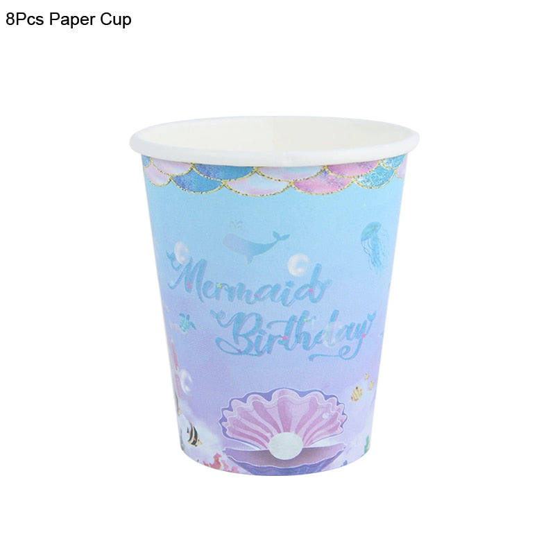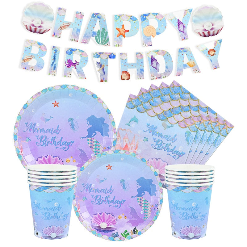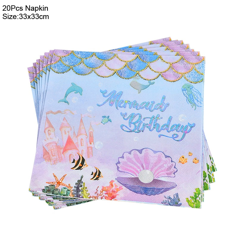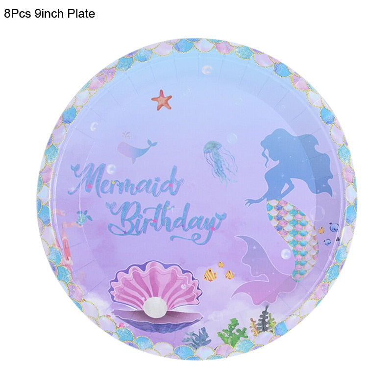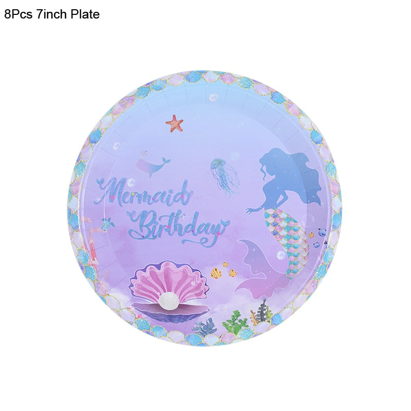 1set Mermaid Party Disposable Tableware Little Mermaid Girl 1st Birthday Decoration Shell Paper Plate Napkin Cup Baby Shower