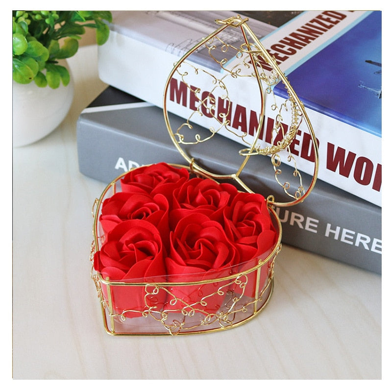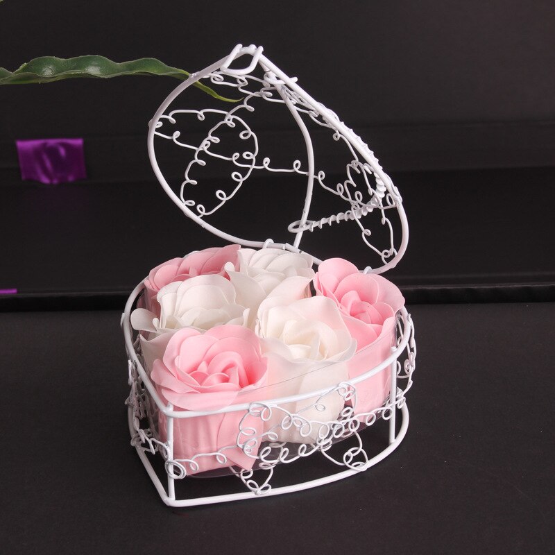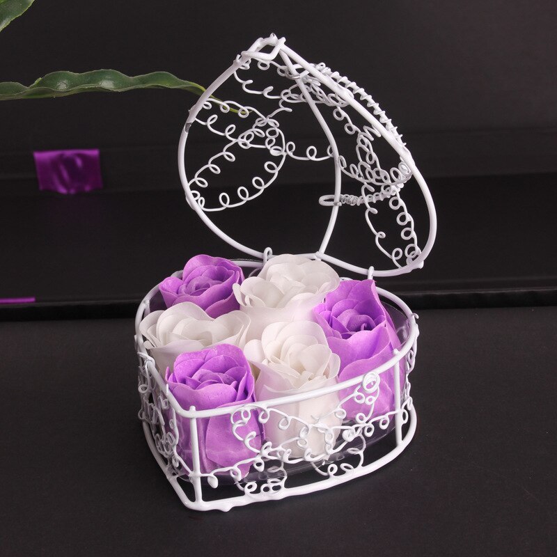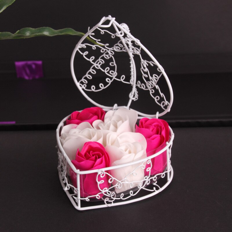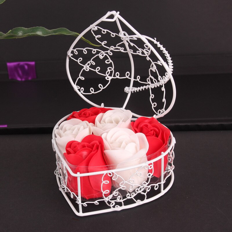 Metal Basket 6 Rose Soap Flower Heart-shaped