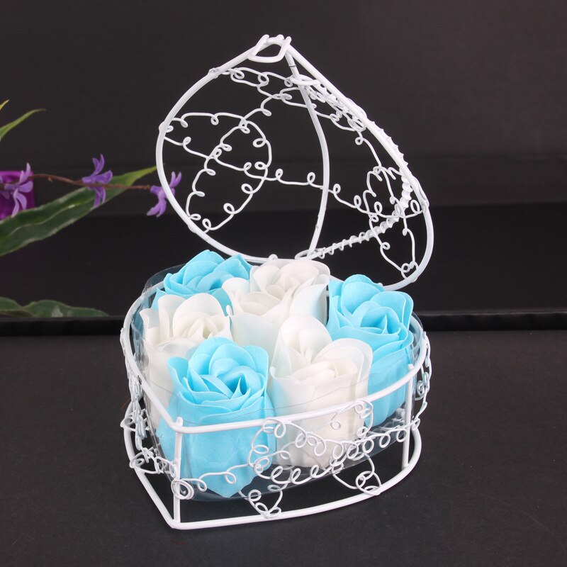 Metal Basket 6 Rose Soap Flower Heart-shaped Gift Box Birthday Valentine's Day Gift Giveaway Aromatherapy Artificial Flowers