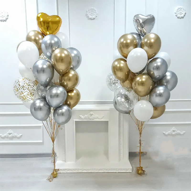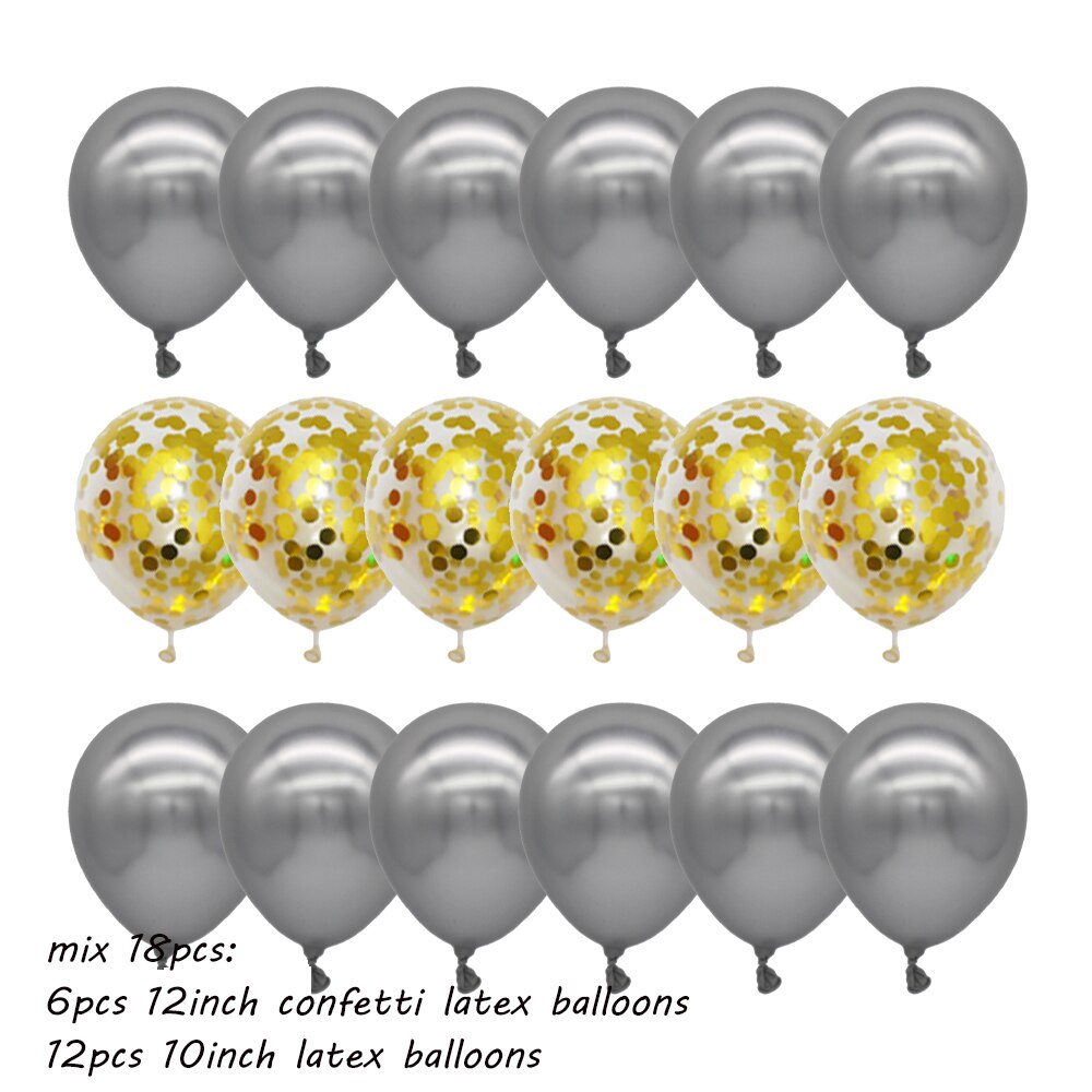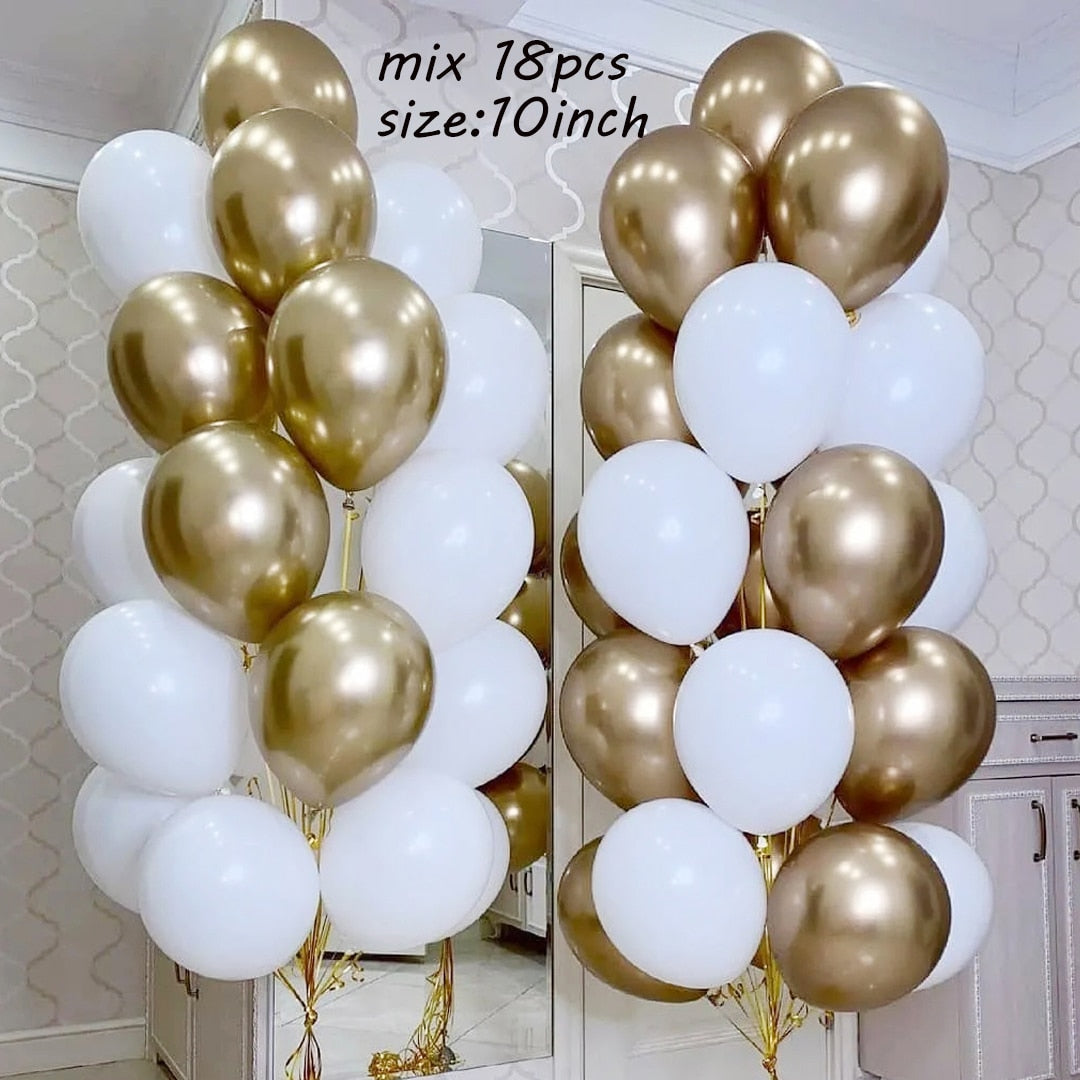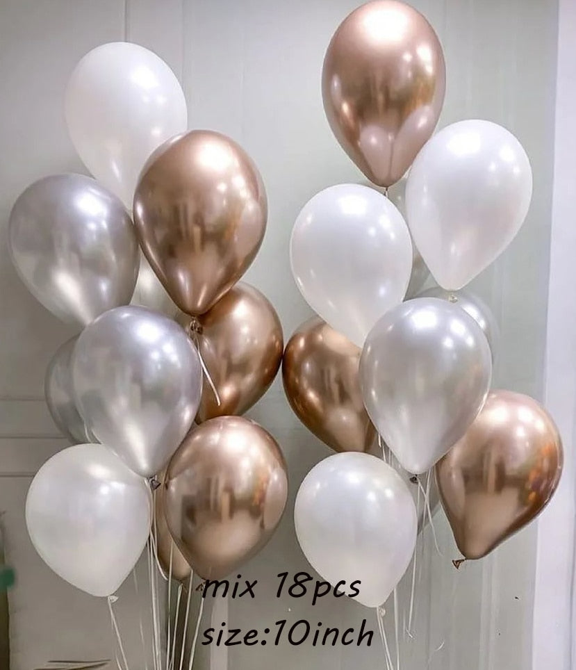 18Pcs/set Metallic Gold Silver White Ballon Brial Birthday Confetti Balls Air Helium Baloon Ramadan Home Festive Party Supplies