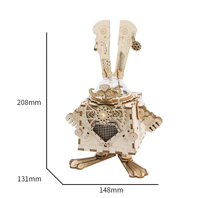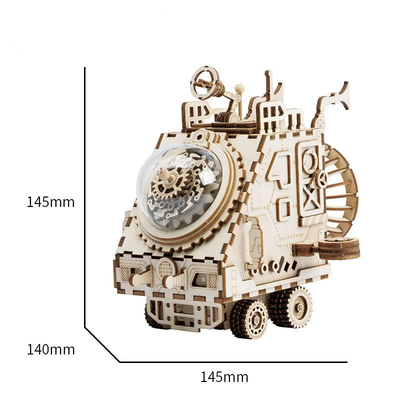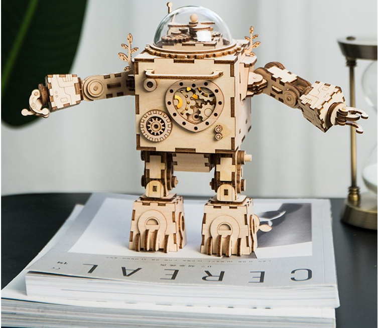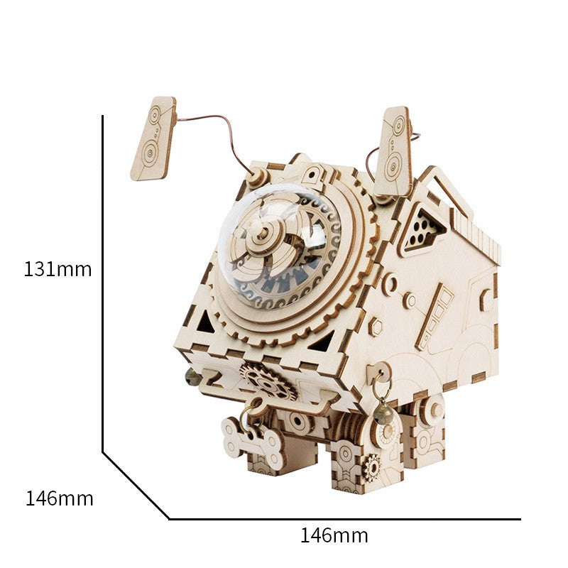 Once assembled, the Music Box Birthday Gift Robot measures 150x92x185mm, making it a compact and eye-catching addition to any room. Its size allows for easy placement on a desk, shelf, or bedside table. The wooden construction and octave movement give it a timeless and vintage feel, making it a truly special gift.