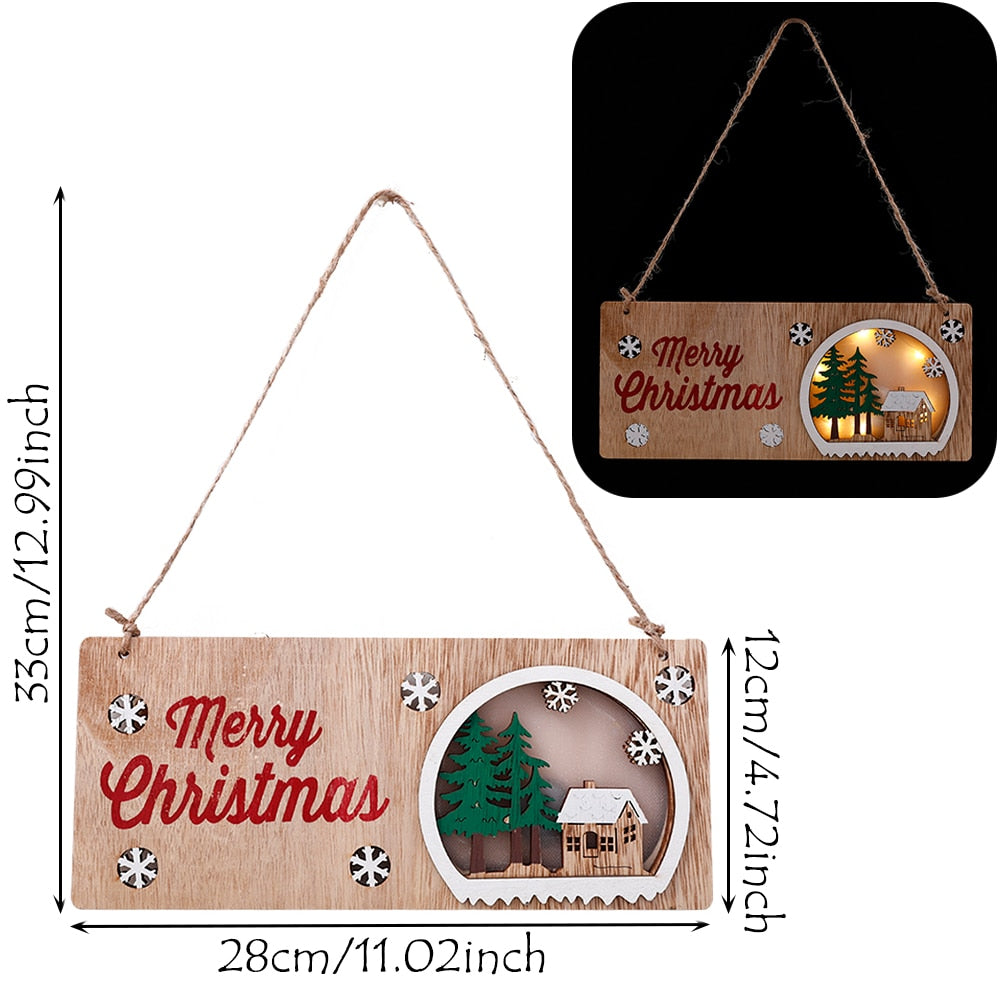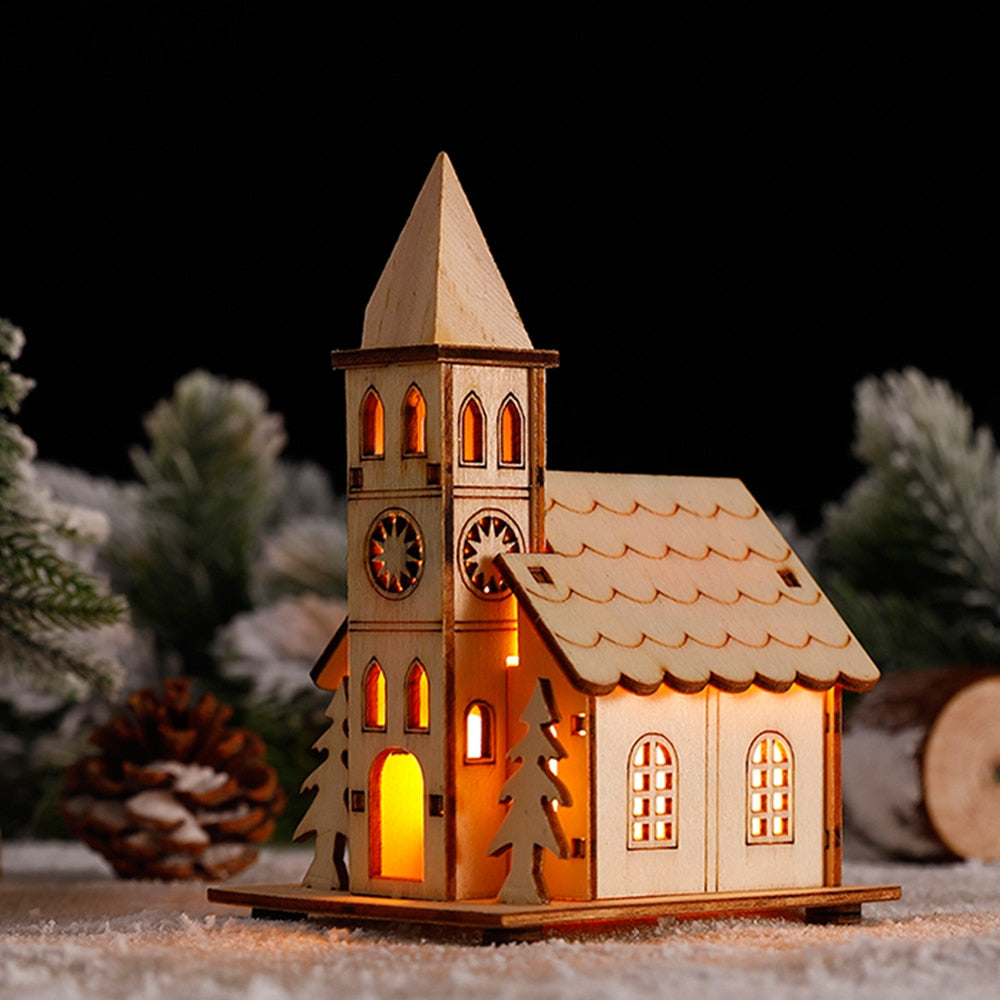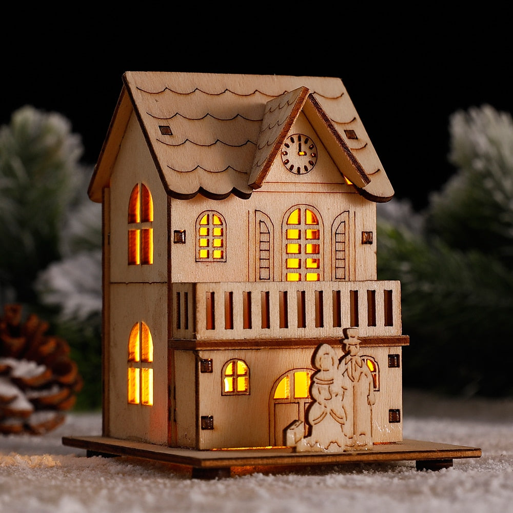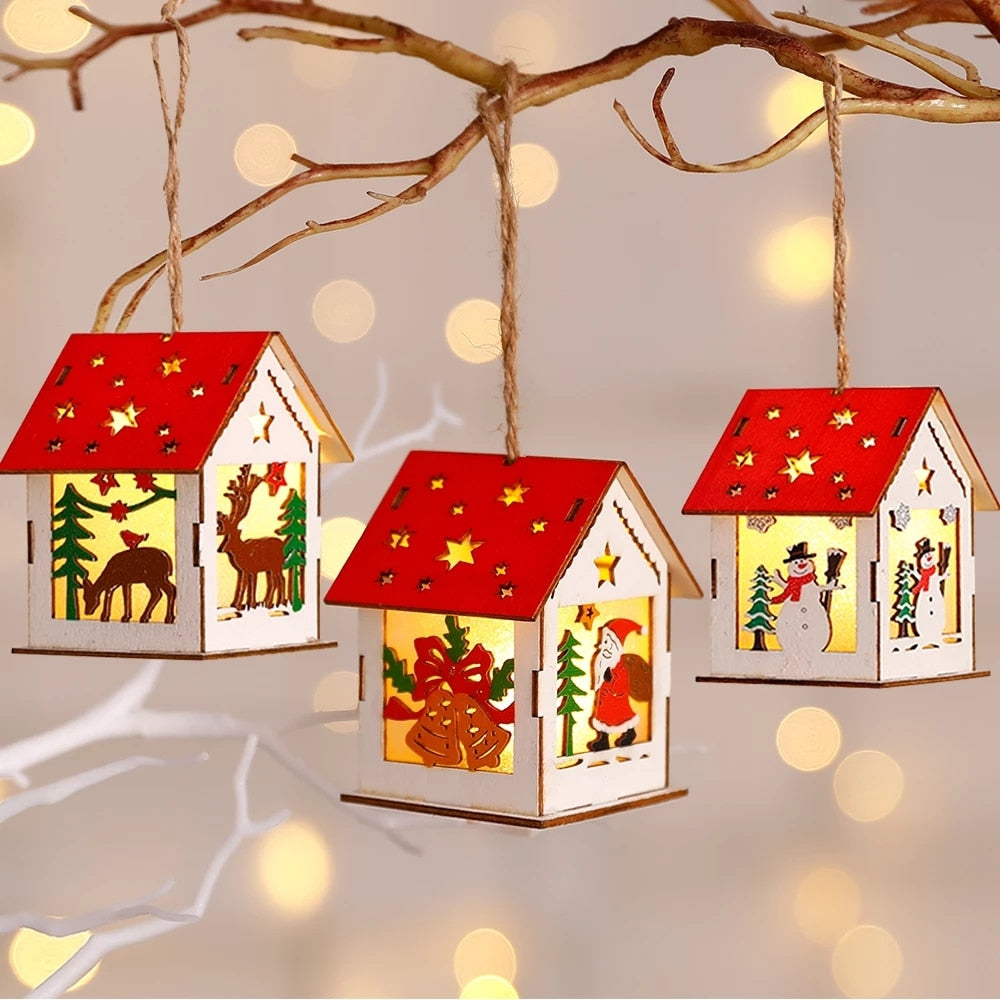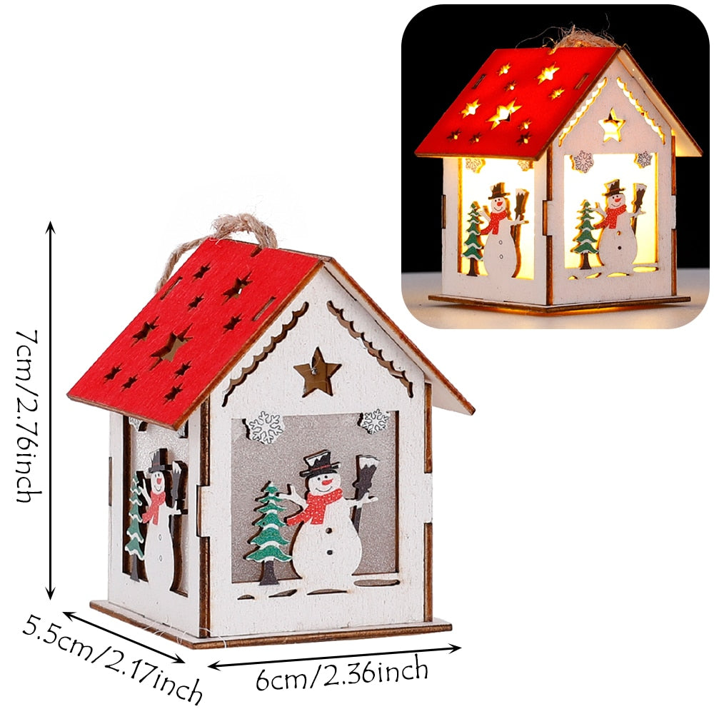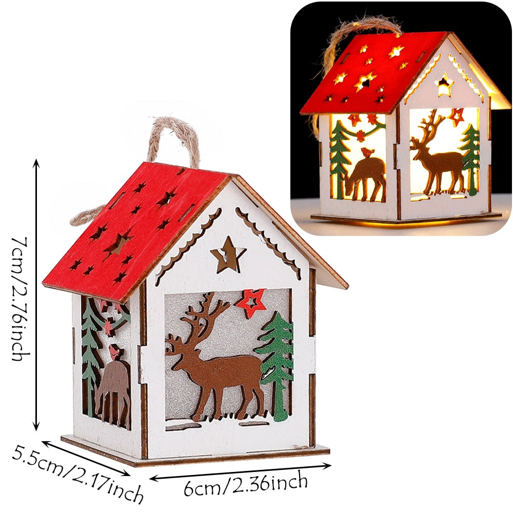 DIY Natural Wooden Hanging Log Cabin With Warm LED Lights Christmas Ornaments Wood Glowing Castle Lamp New Year Gifts Kids Toys