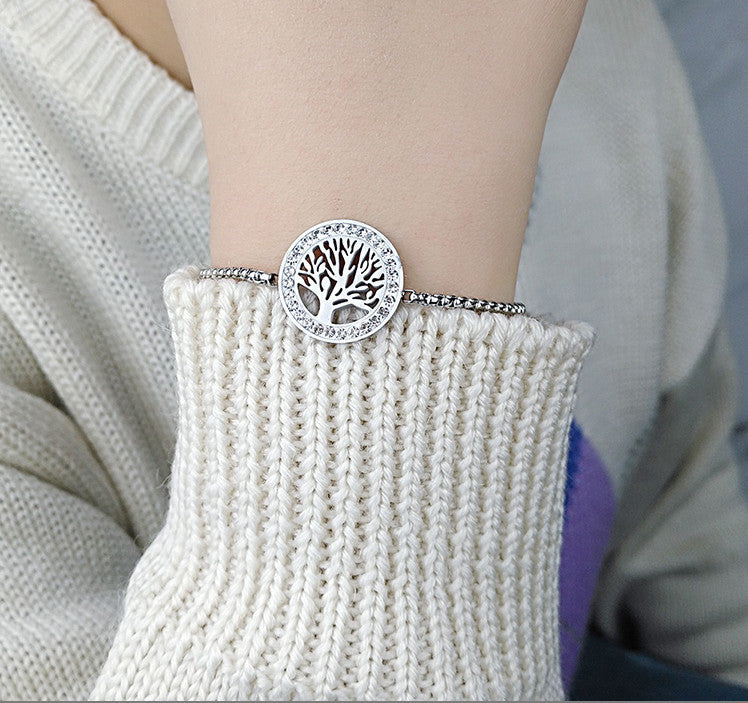 New Stainless Steel Adjustable Heart Tree Bracelets Women Steel CZ Stone Family Bracelet Mothers Day Gift