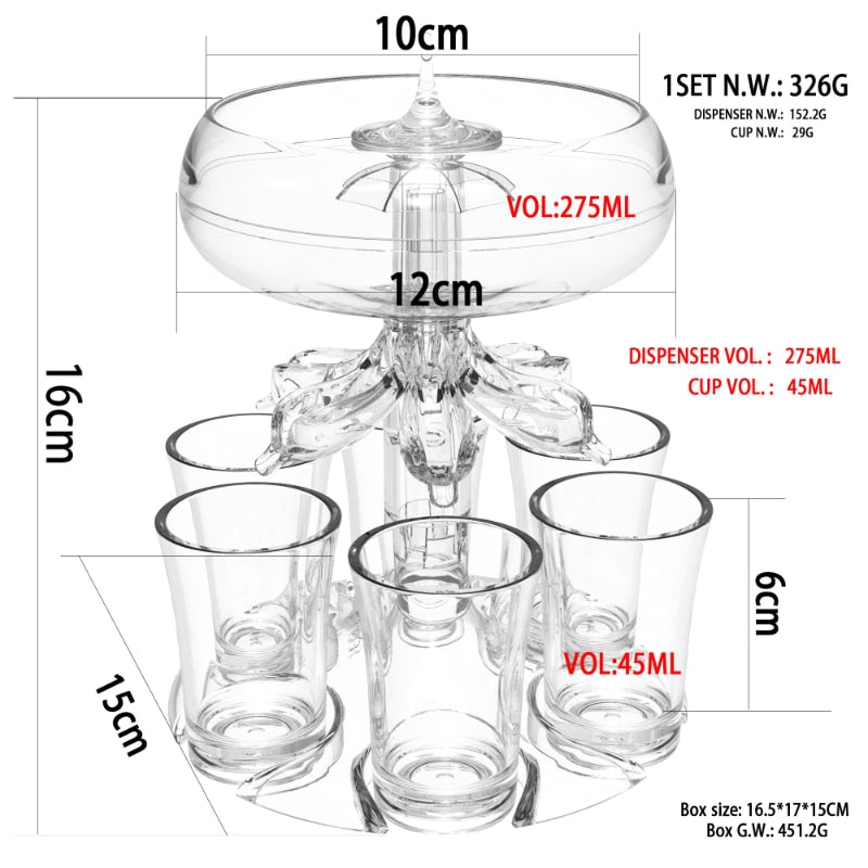 - 6 Shot Glass Dispenser -Diverse alcohol dispenser bottles shots give the perfect measure each time, neat and elegant way of dispensing. The liquor dispenser is great for holidays, parties bars and home bars. Enjoy your good wine time when you are spare at home.