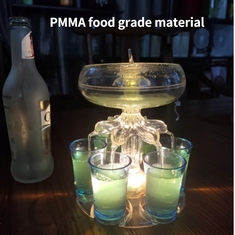 - Upgraded New Design- Liquid Must be poured into the direct center to ensure even distribution into each shot glass!ALL shot glasses are food grade material,high infill to ensure sturdiness.