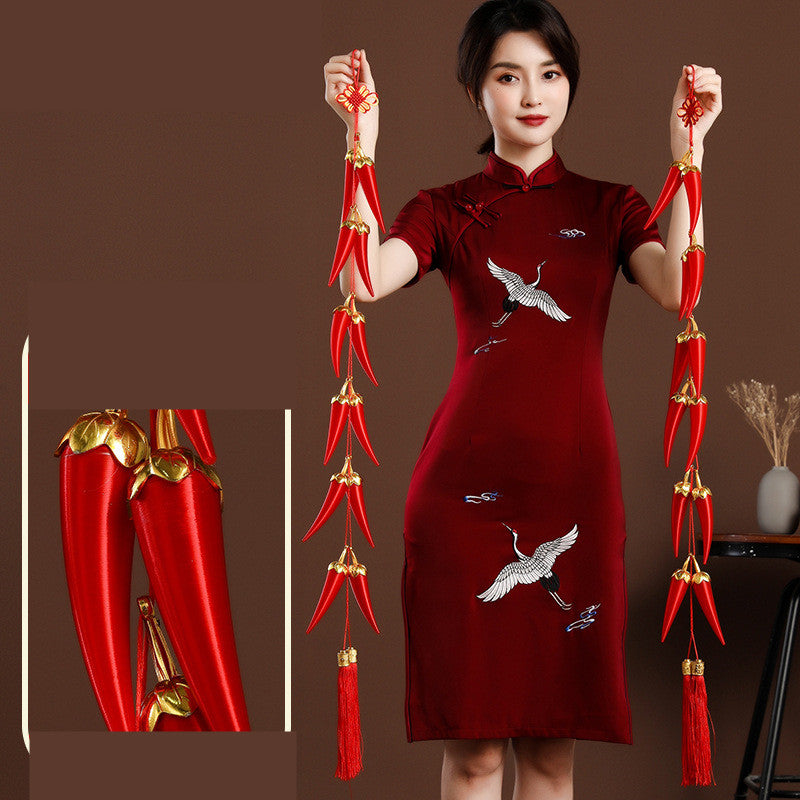 Each New Year Decoration Window Wall Hanging Chili comes with a flannelette pendant, adding an extra touch of charm and elegance. Hang it in your window, on your wall, or even use it as a centerpiece for your New Year's table setting. The possibilities are endless!